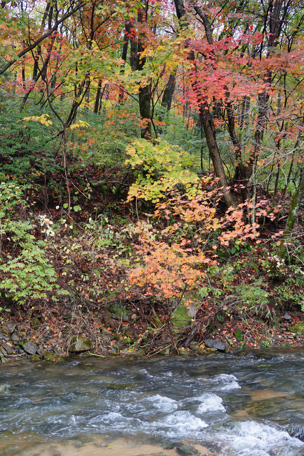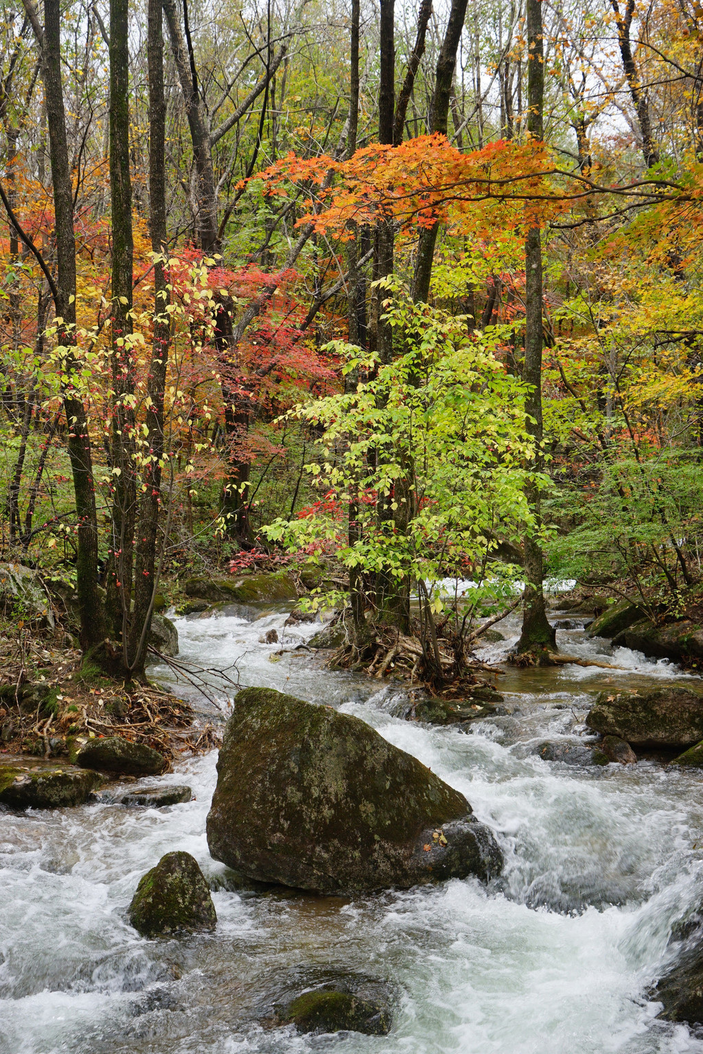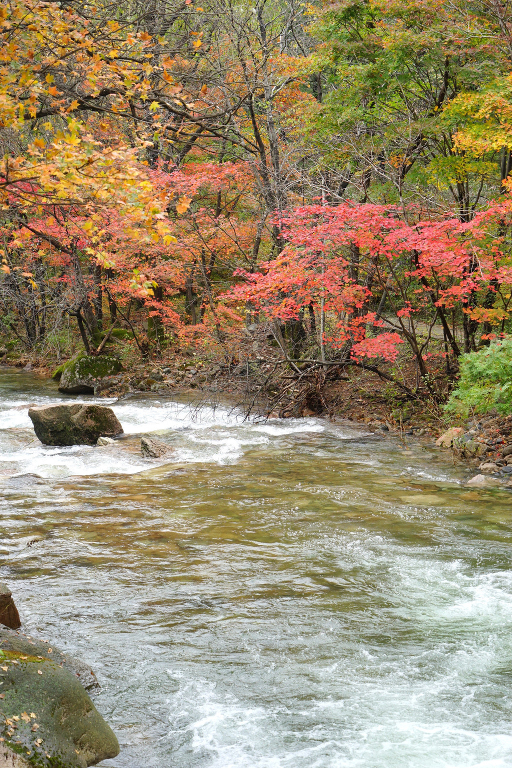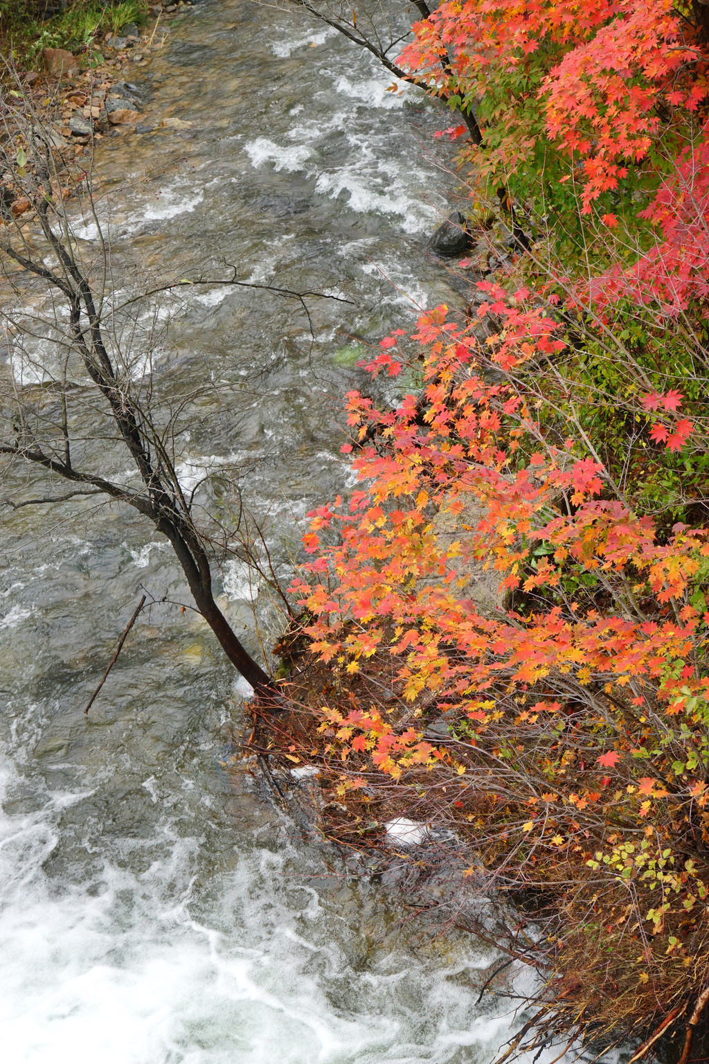 枫树喜欢临水而居,只要沟里有水,便还你一片红一片黄。