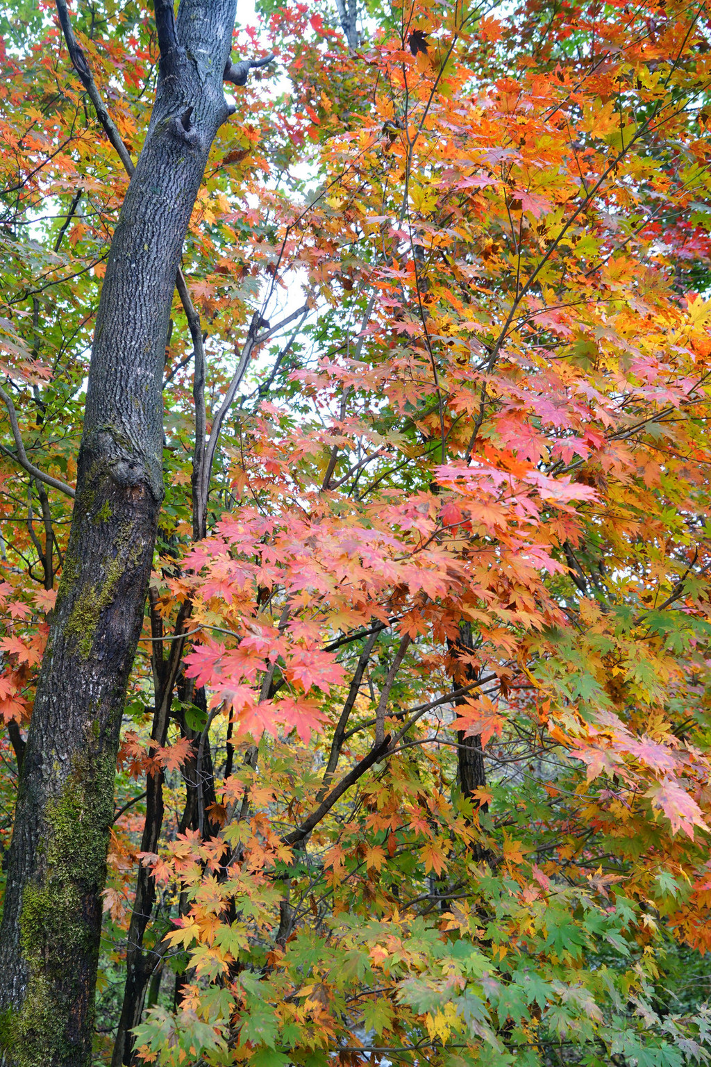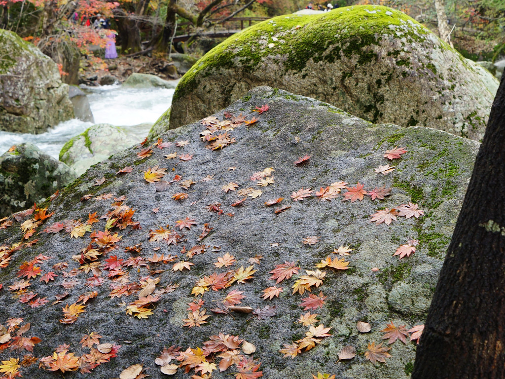大概是阳光偏少的原因,老边沟的枫叶好像偏小,大多叶片都有斑点,这无疑是美中不足。