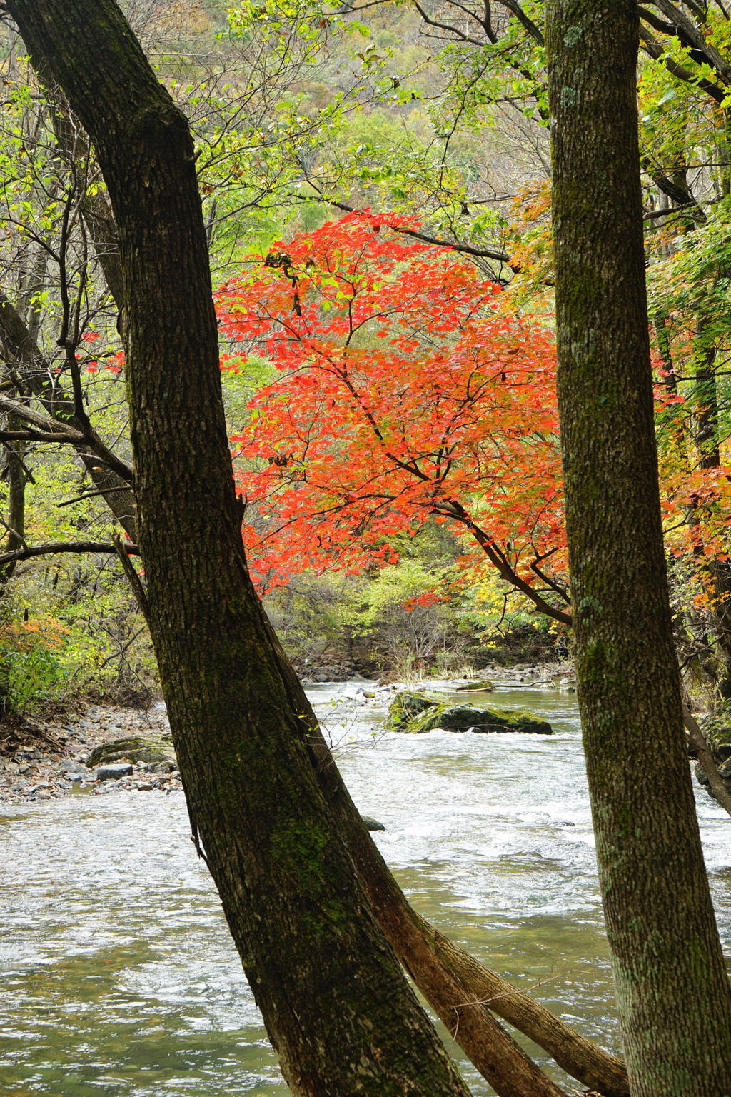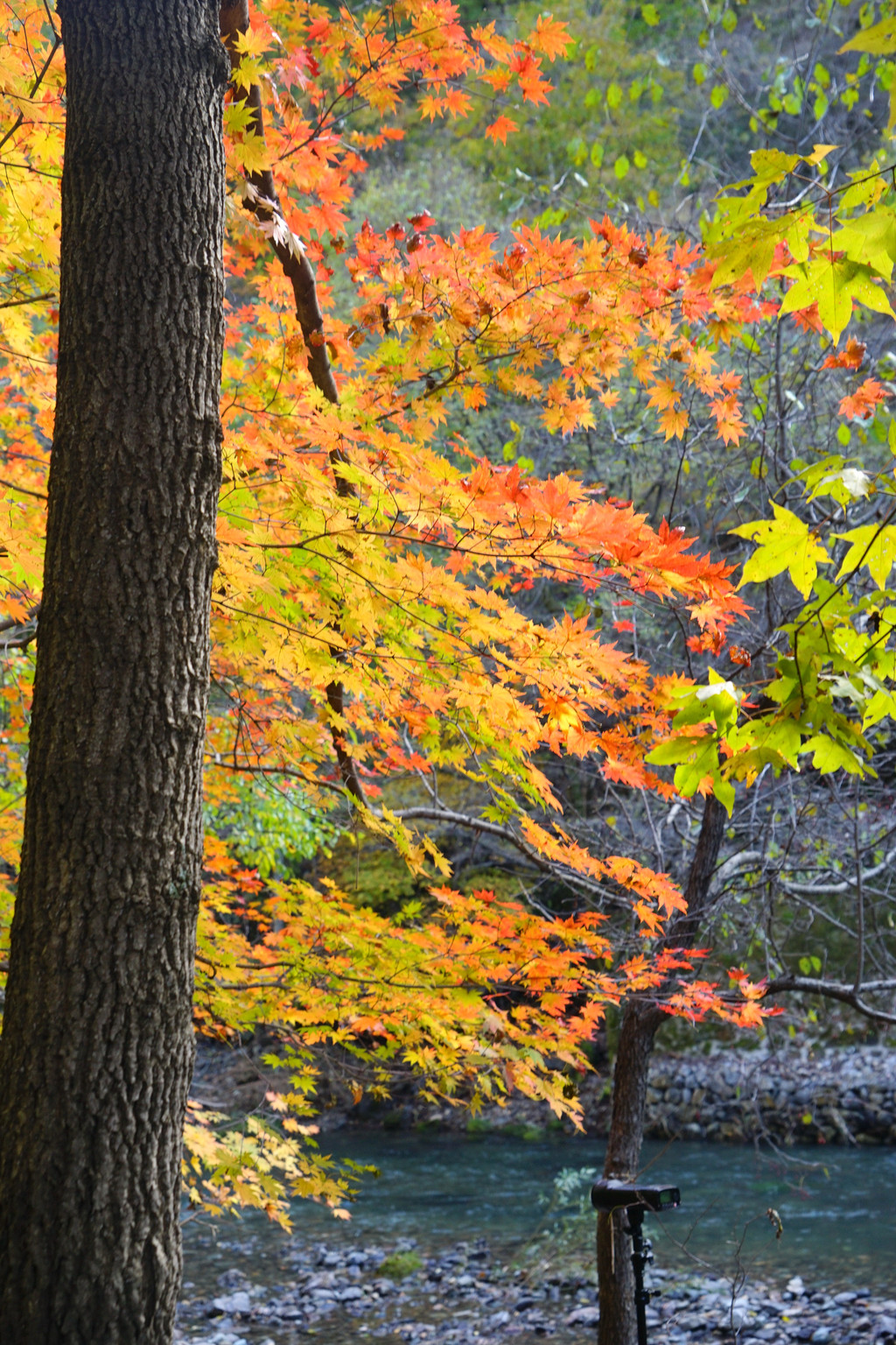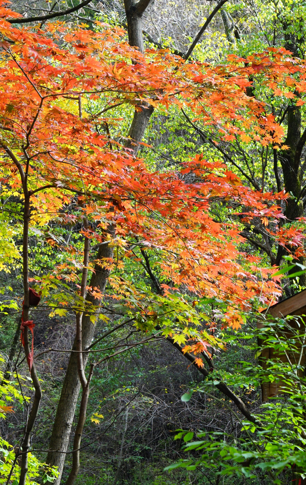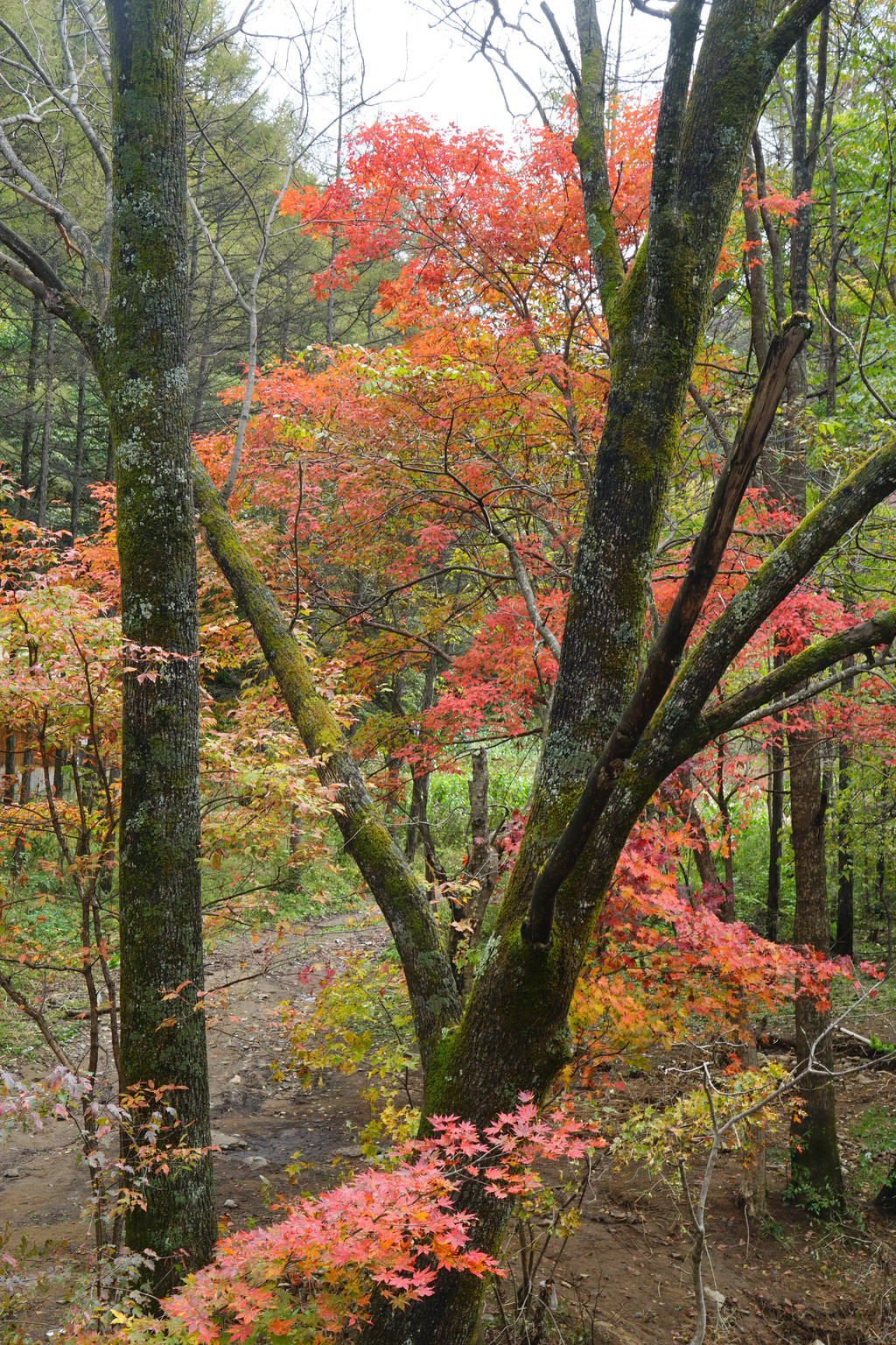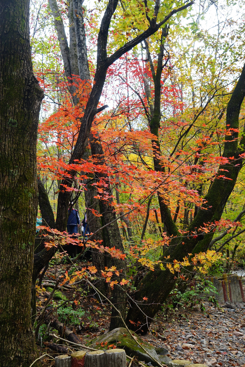 照片中的大老粗的树干,其实是其它树种作的陪衬。在这个斑斓的时刻,暂且委屈这些大树。