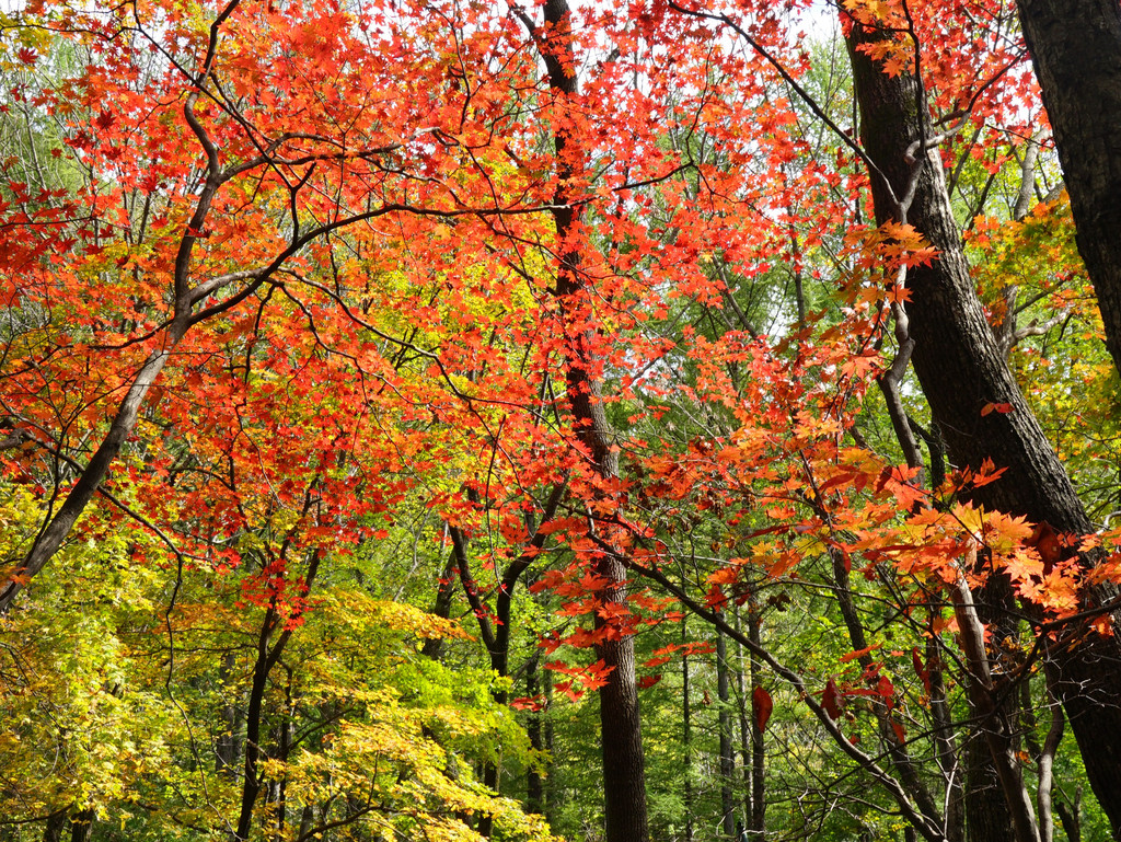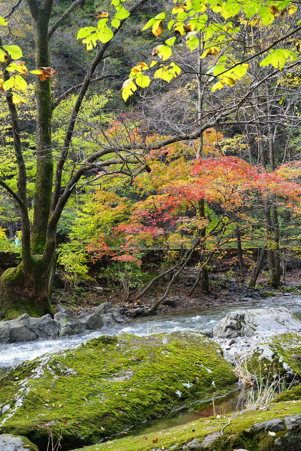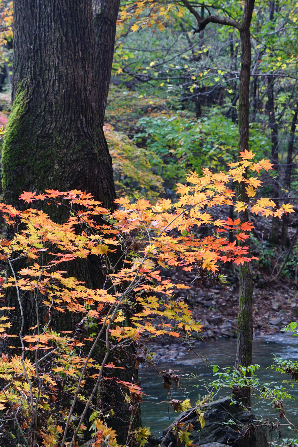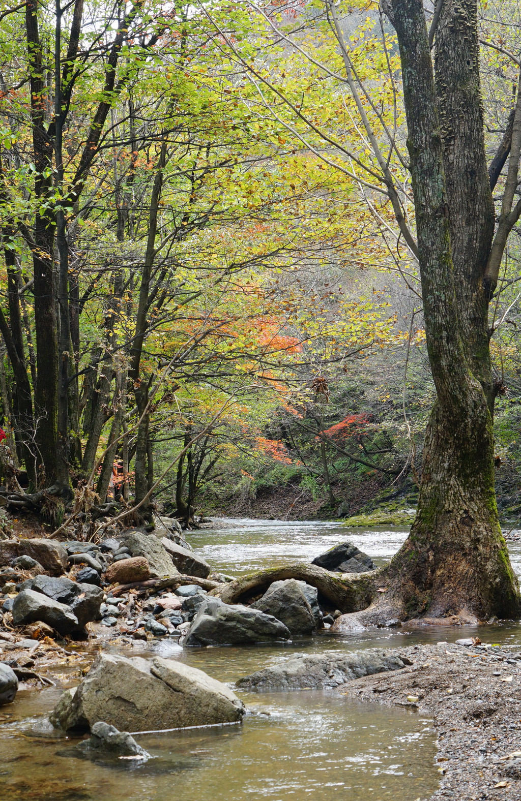 照片中的大老粗的树干,其实是其它树种作的陪衬。在这个斑斓的时刻,暂且委屈这些大树。