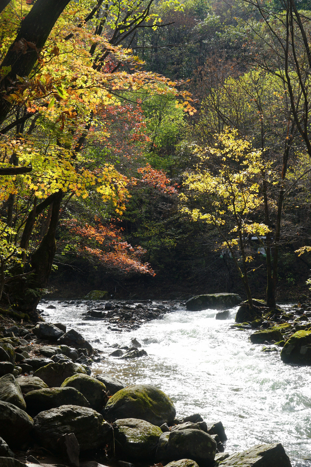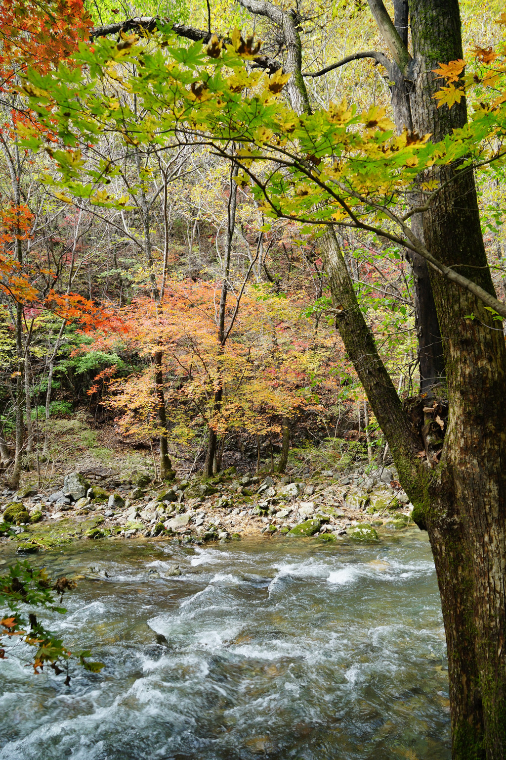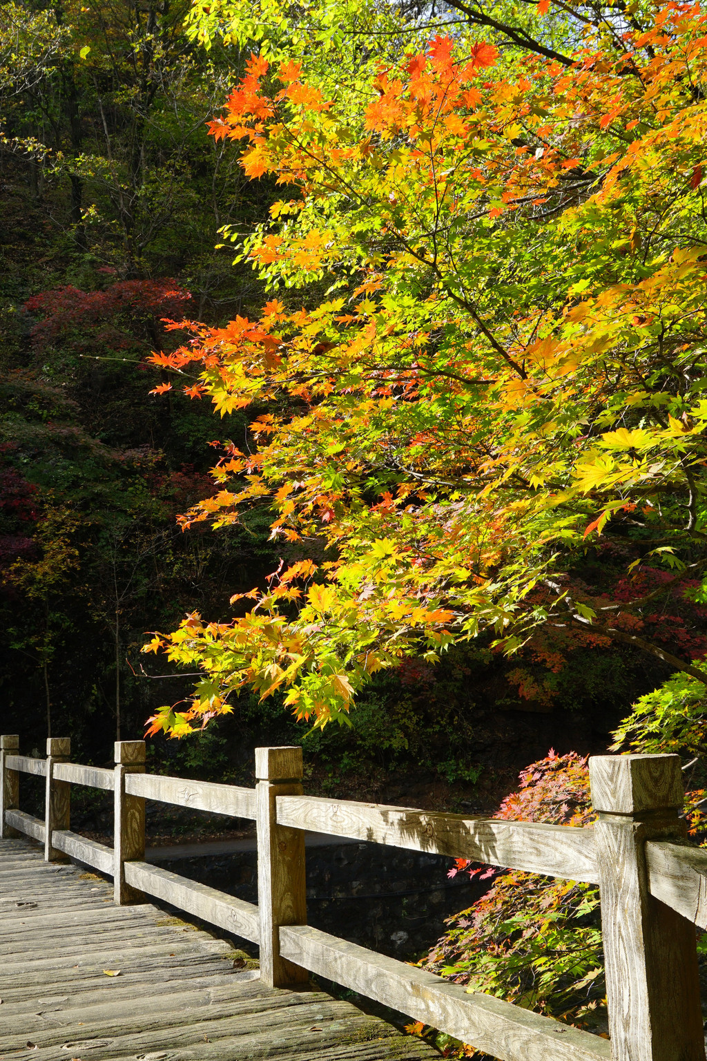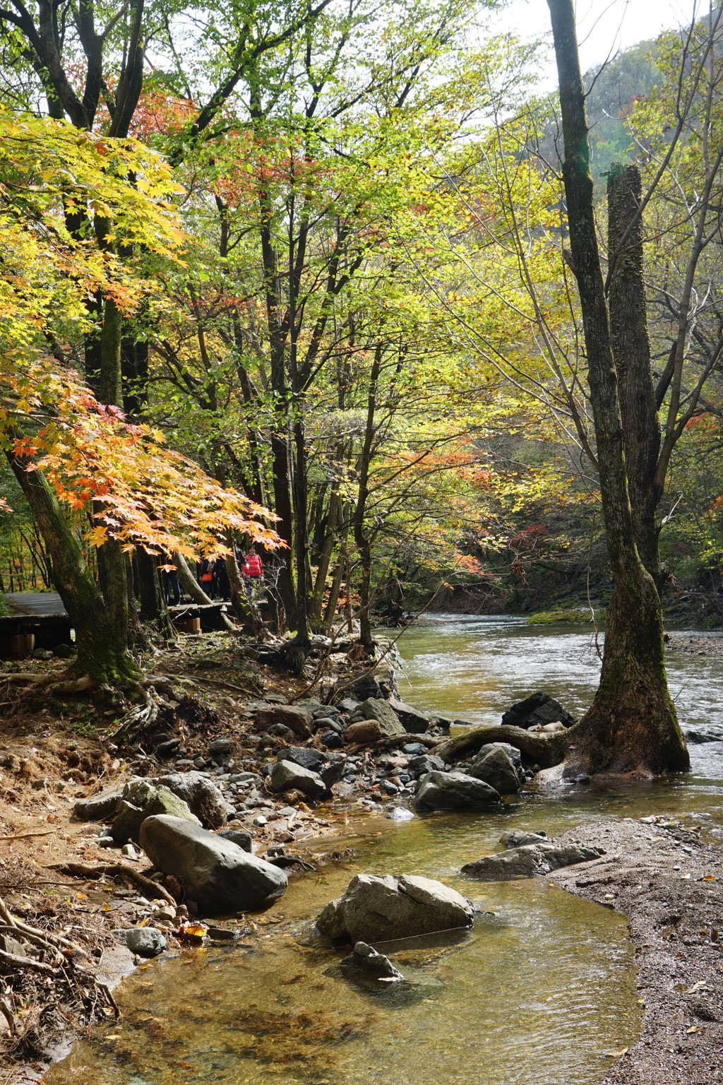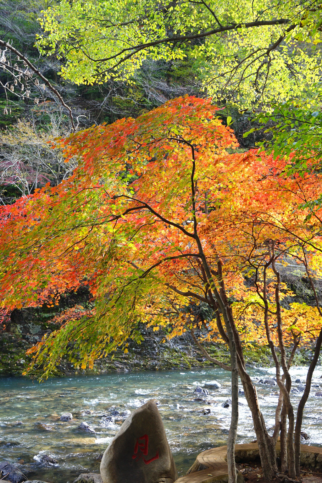 照片中的大老粗的树干,其实是其它树种作的陪衬。在这个斑斓的时刻,暂且委屈这些大树。