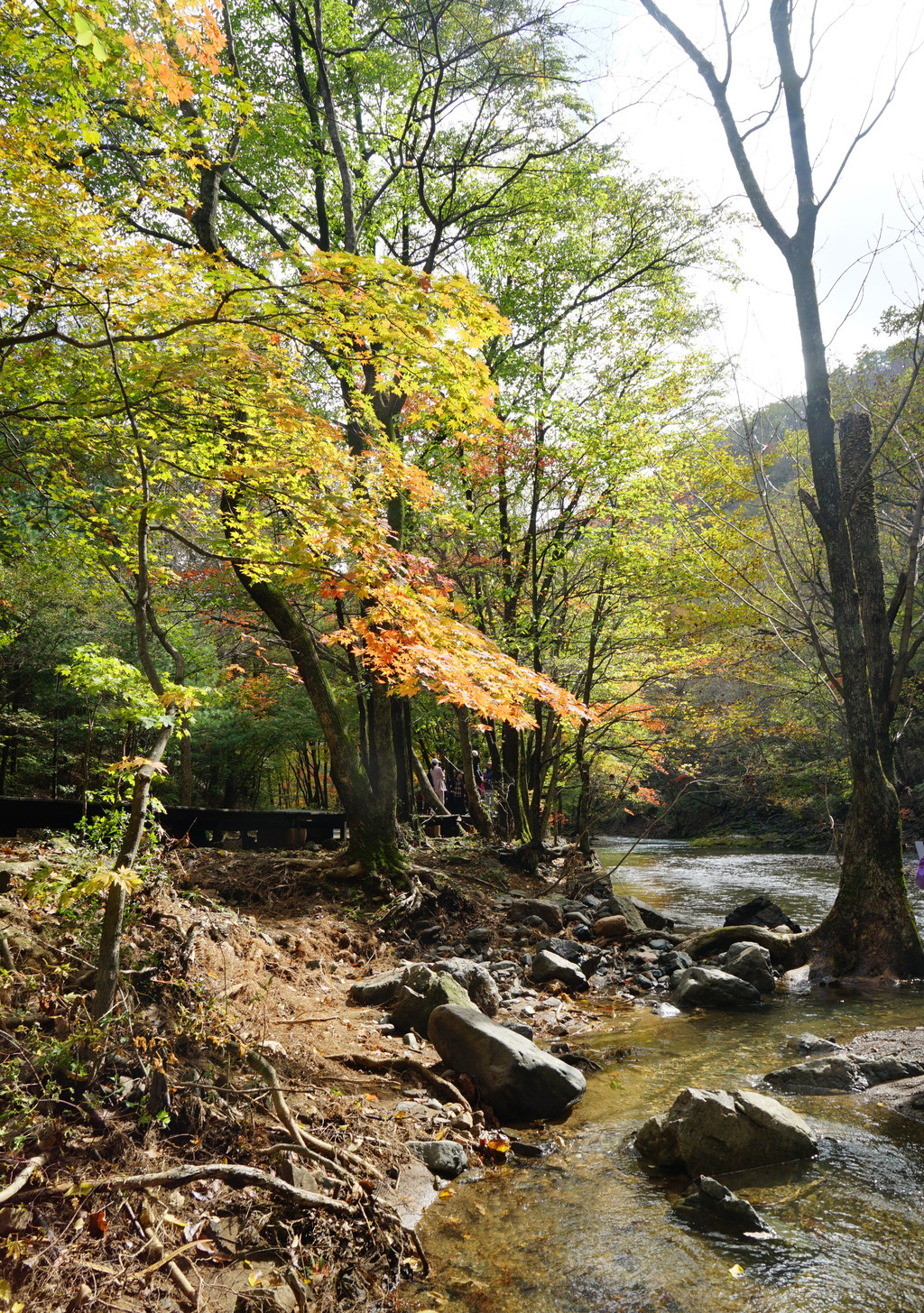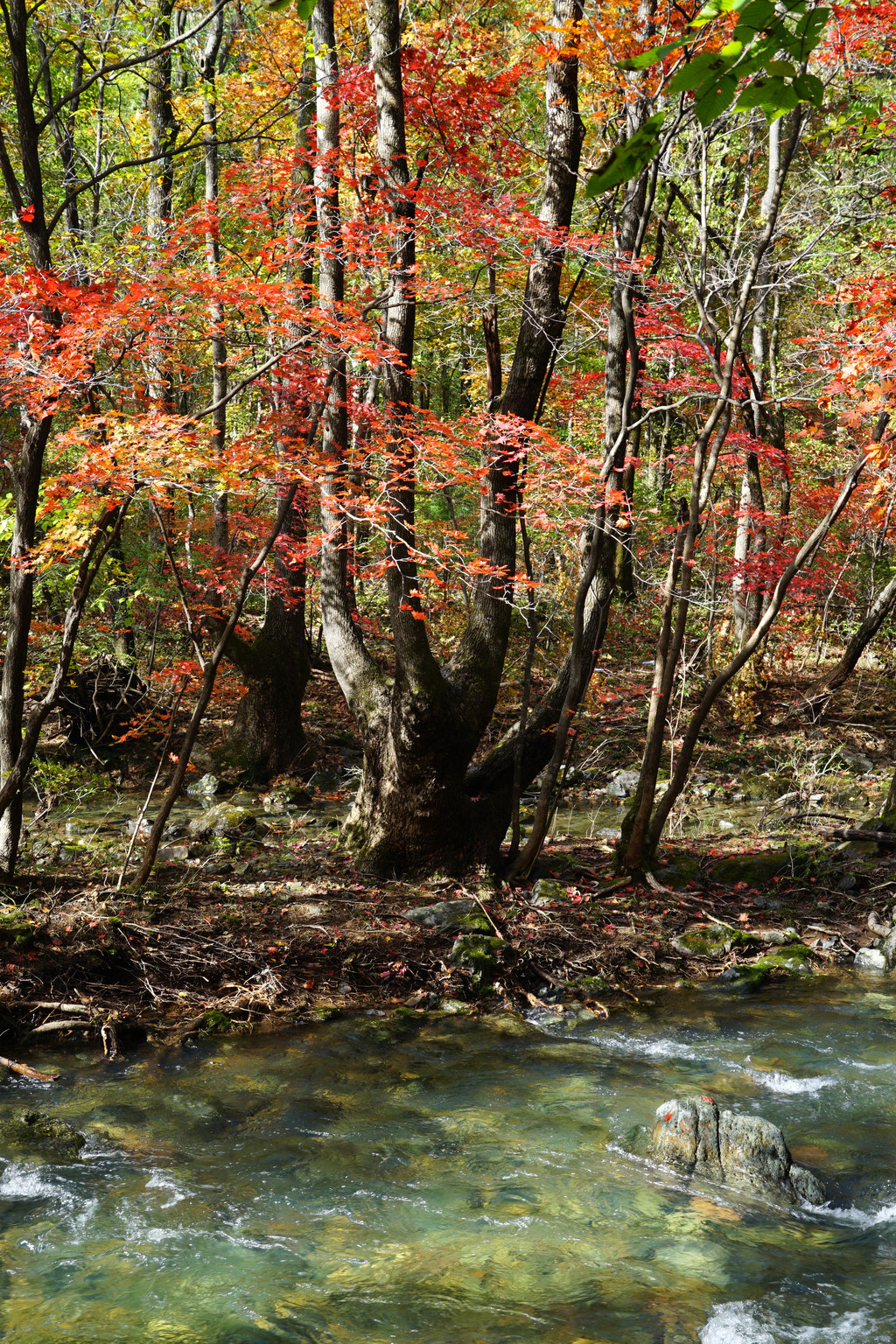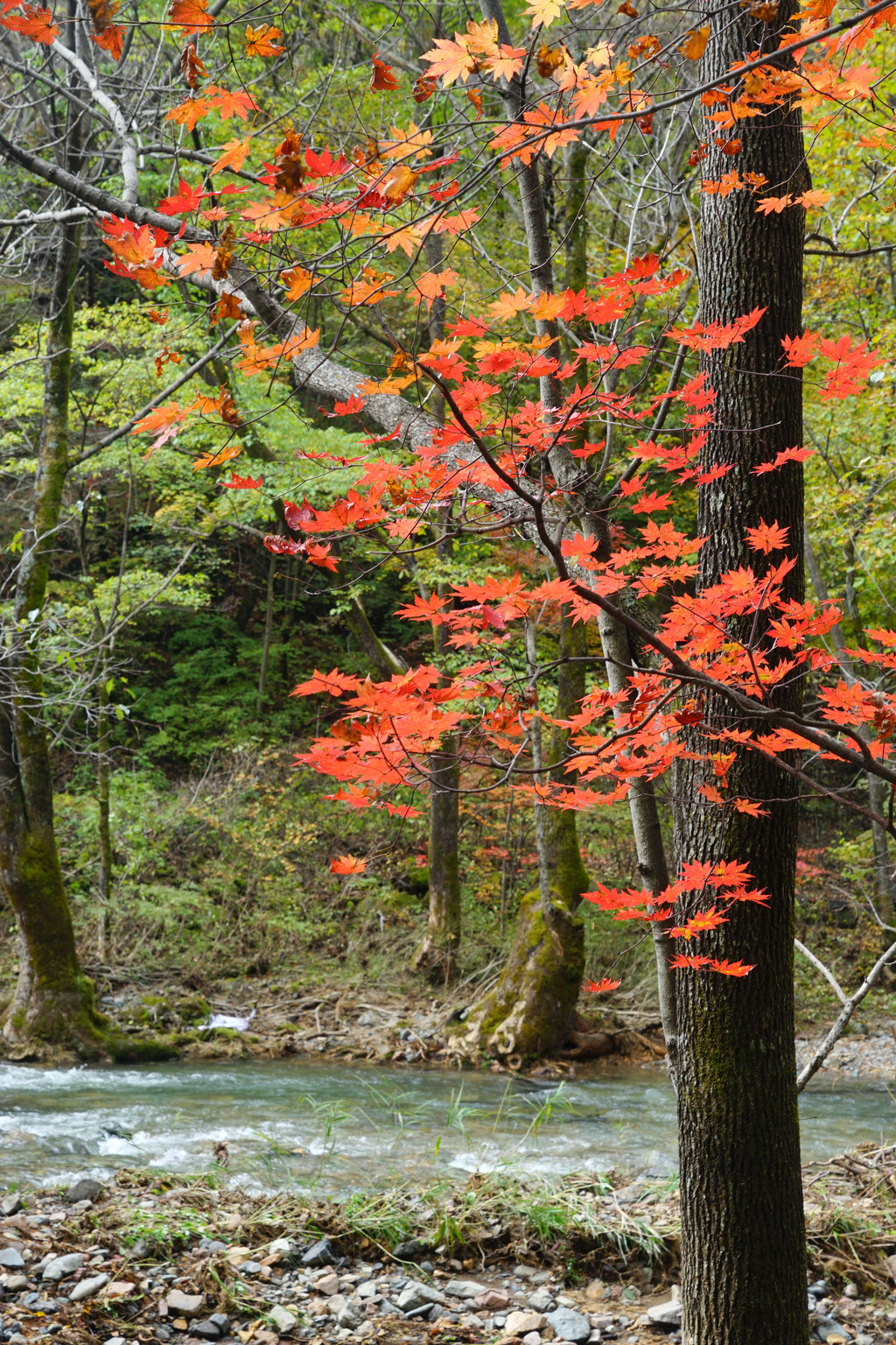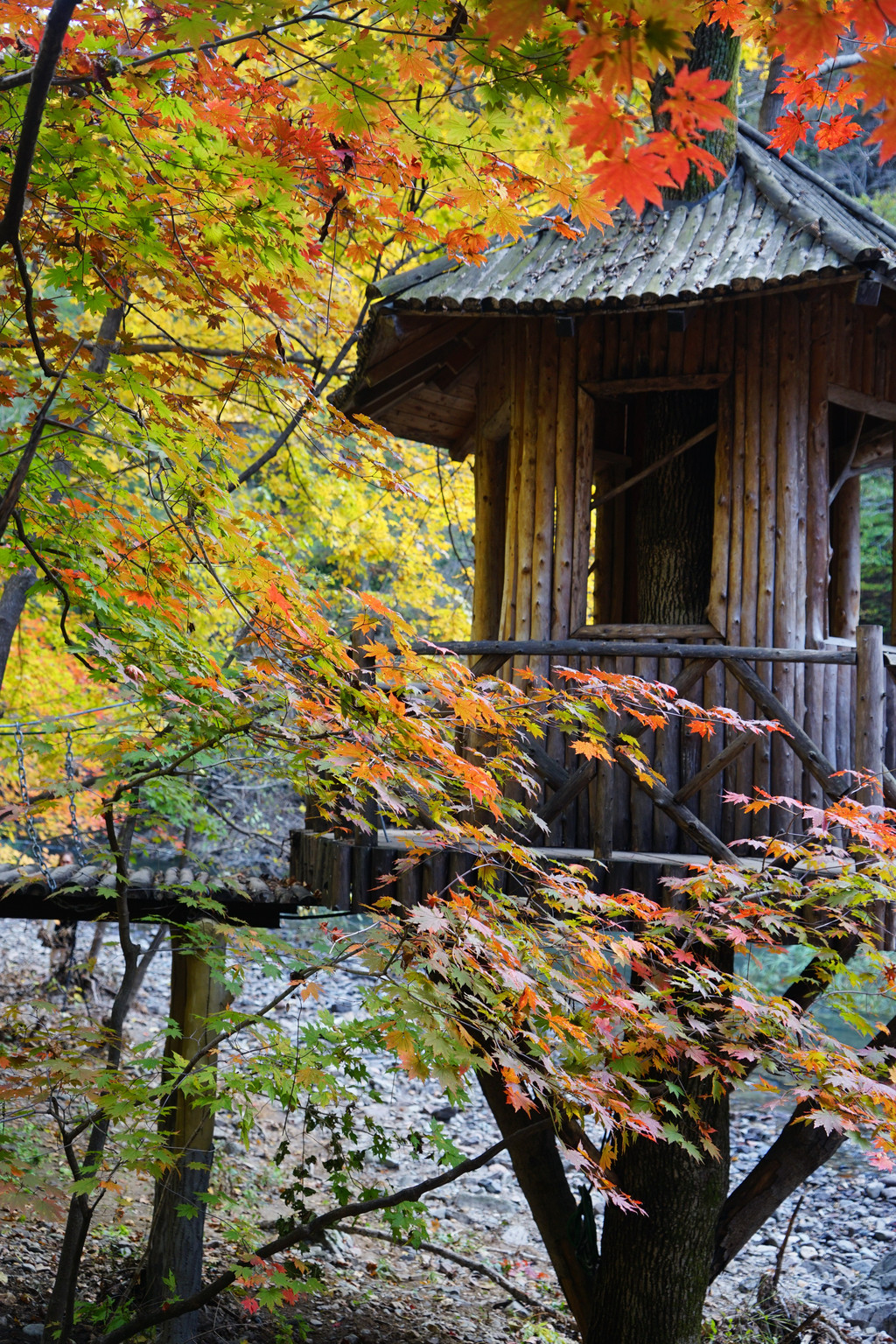 照片中的大老粗的树干,其实是其它树种作的陪衬。在这个斑斓的时刻,暂且委屈这些大树。