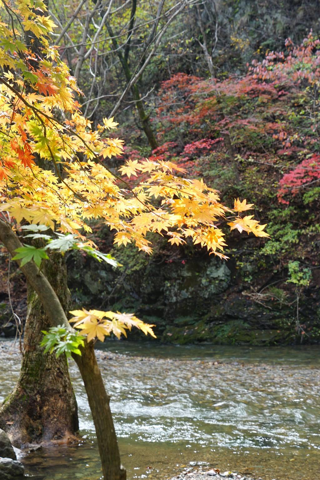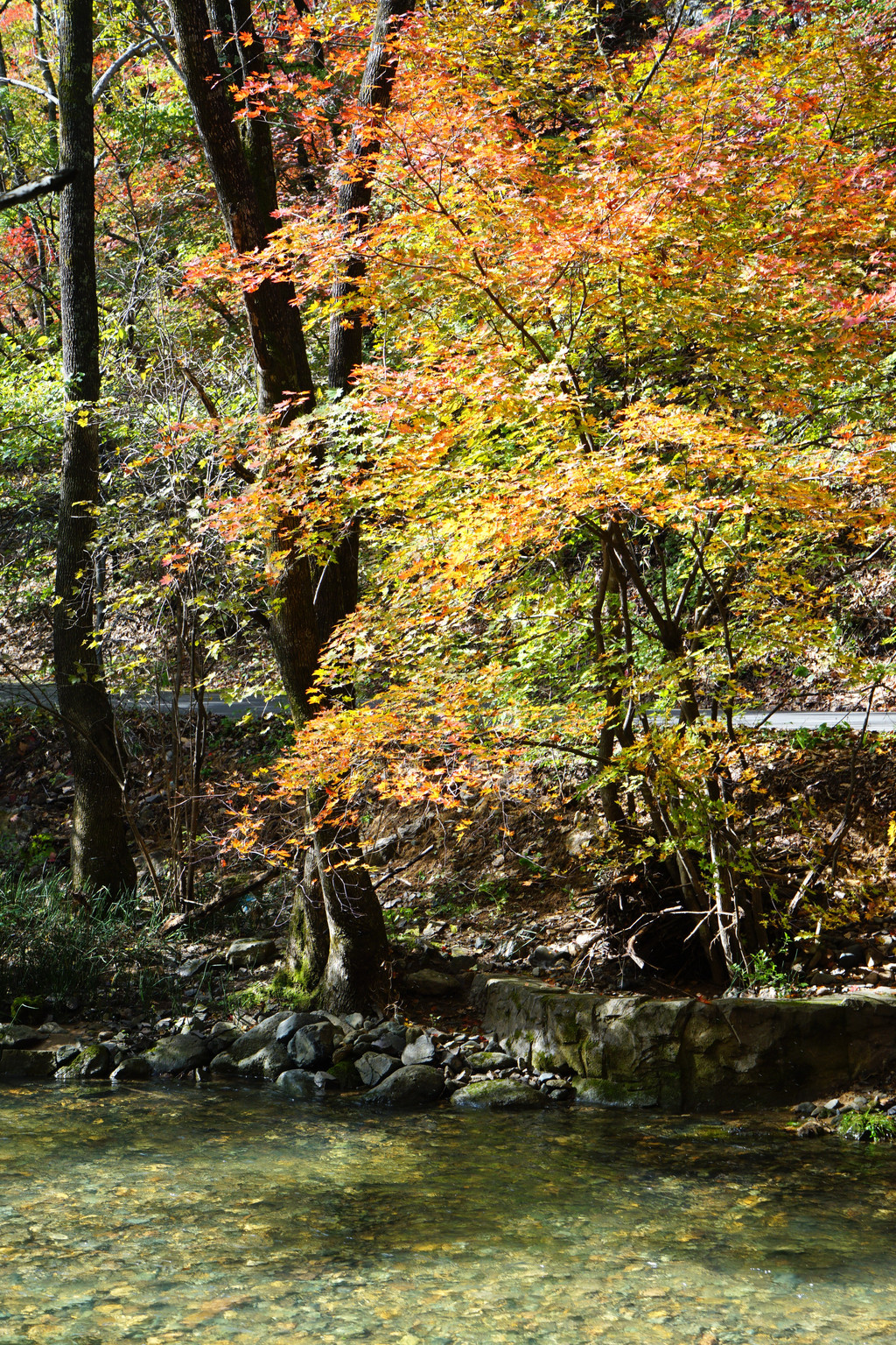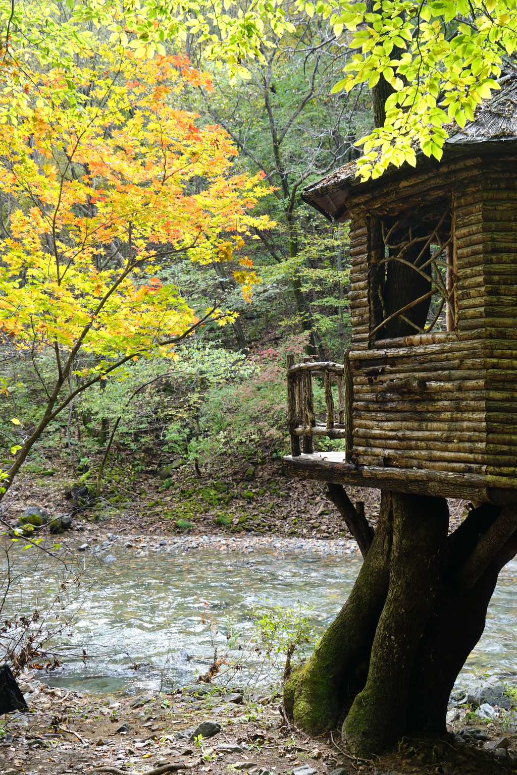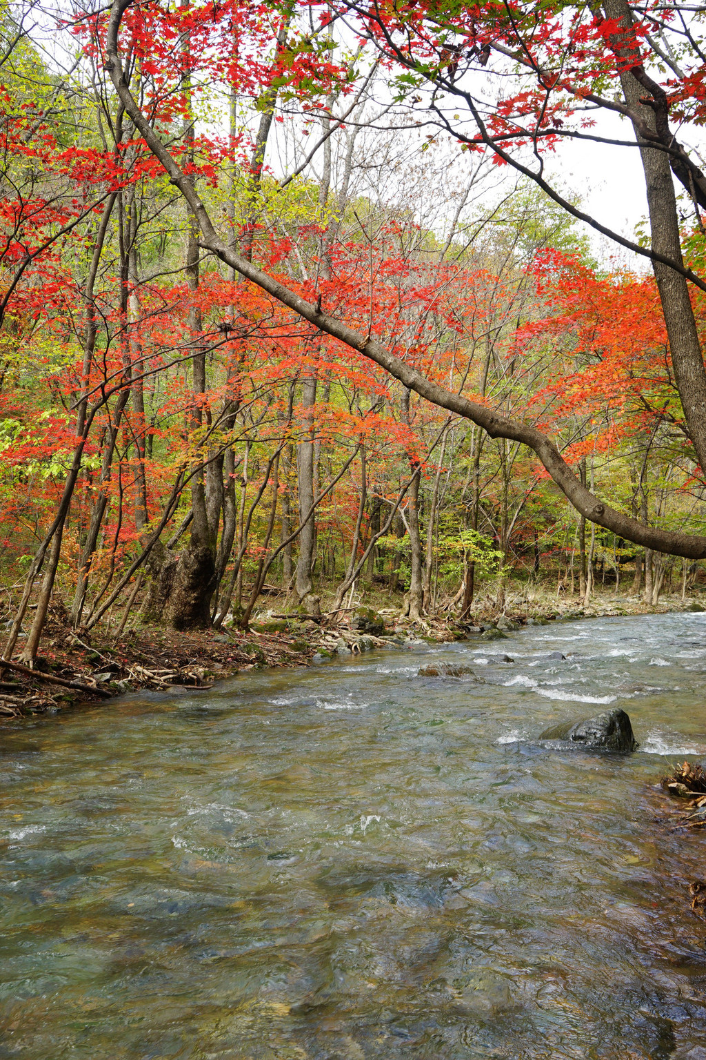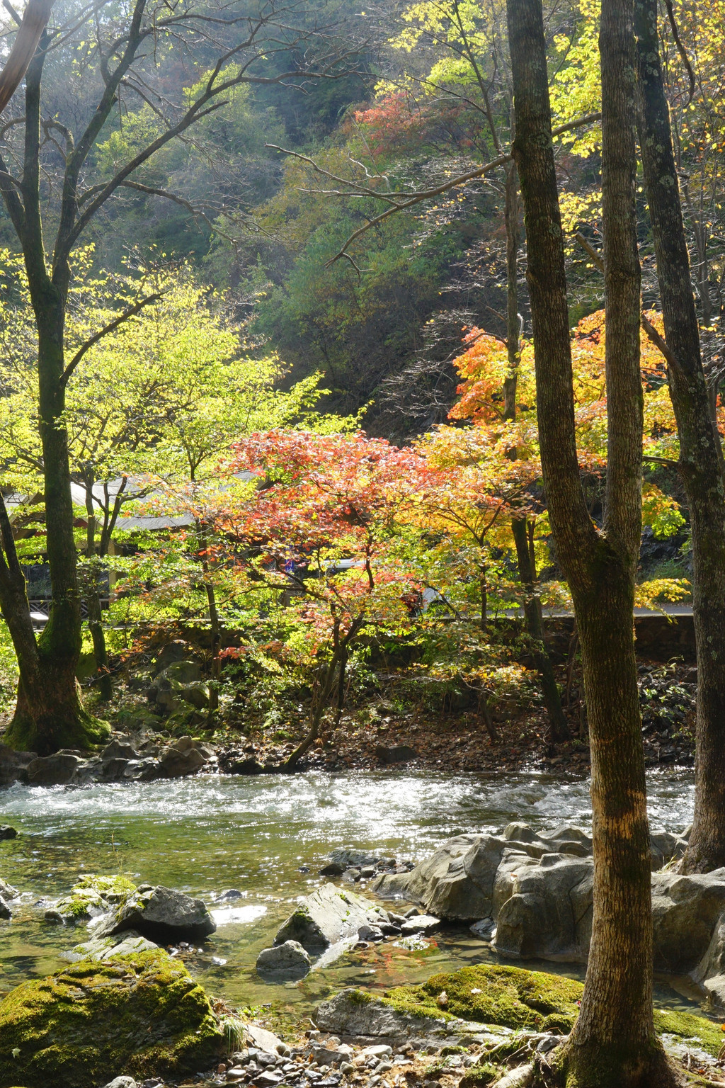 照片中的大老粗的树干,其实是其它树种作的陪衬。在这个斑斓的时刻,暂且委屈这些大树。