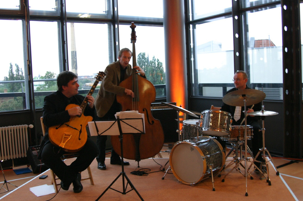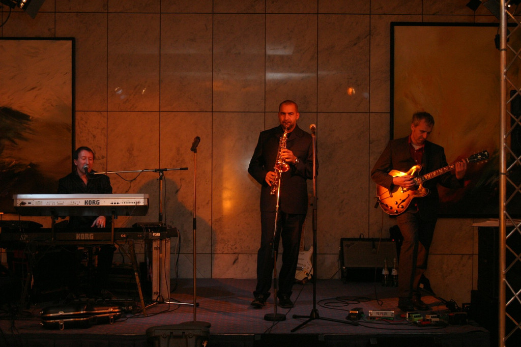 角落里,有乐队的演奏贯穿整个欢迎酒会的始终。