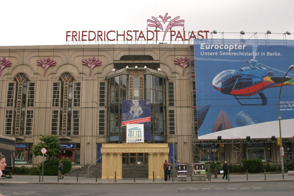 Friedrichstadt-Palast,腓特烈皇宫剧院位于柏林中部,地址在 Friedrichstra?e 107,它建成于1984年,从里到外都透露着 " 华丽 " 二字,尤其是那些 Art Deco 花窗玻璃。Friedrichstadt-Palast是欧洲最历史悠久的戏剧院之一。虽然已历经近 40 年,如今 Friedrichstadt-Palast 依然是欧洲最大和最现代的秀场。它最具代表性的特色就是传统的排舞。它还拥有自己的腓特烈皇宫剧院蕾舞团。在这里,始终上演着柏林顶尖歌舞剧团传统现场秀 vivid grand show,剧目也十分友好,舞台上几乎没有语言对白,全靠肢体和情绪渲染。这里经常举办各种大型演出和颁奖典礼,这里也是柏林电影节的主要放映场馆之一。