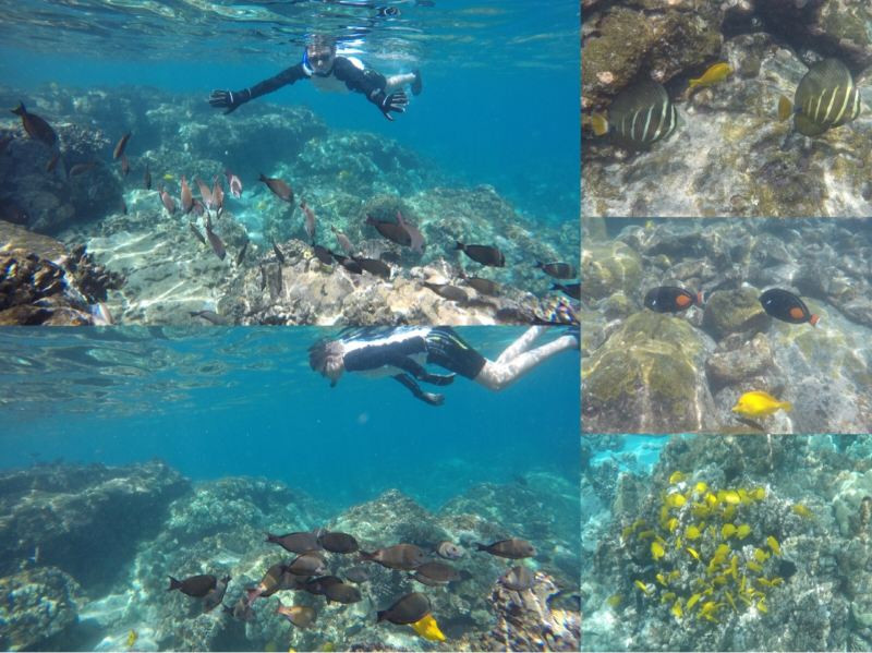 这一天上午浮潜了可爱岛北岸的两个海滩。其中,Haena Beach Park, HI-560, Kapaa, HI 鱼少、浪大,不推荐。
