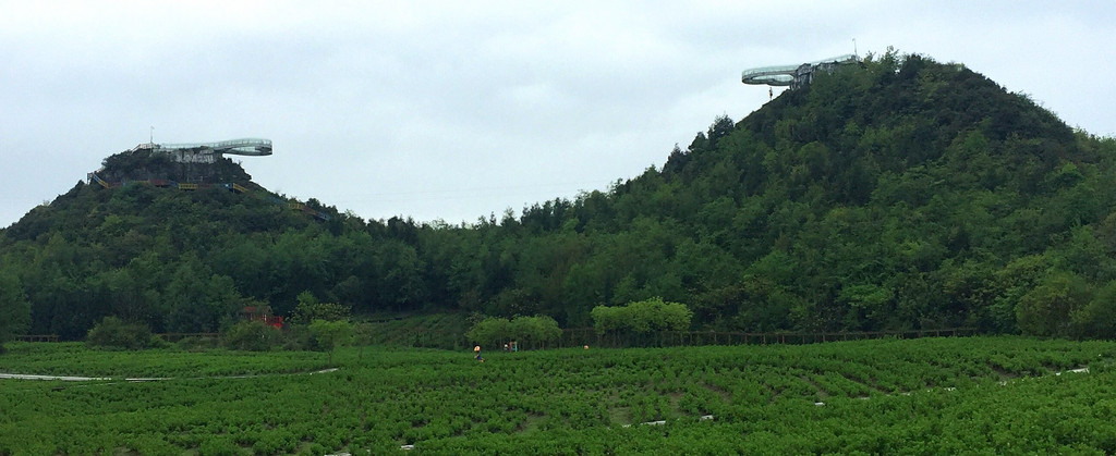 彝山花谷有两处观景台,一处在中心蝴蝶雕塑附近,结构是普通亭子类型,不收费;另一处是玻璃栈道式,两个心形玻璃观景台相对守望,需买票20元,并且不能只买一座观景台,打包两座票。