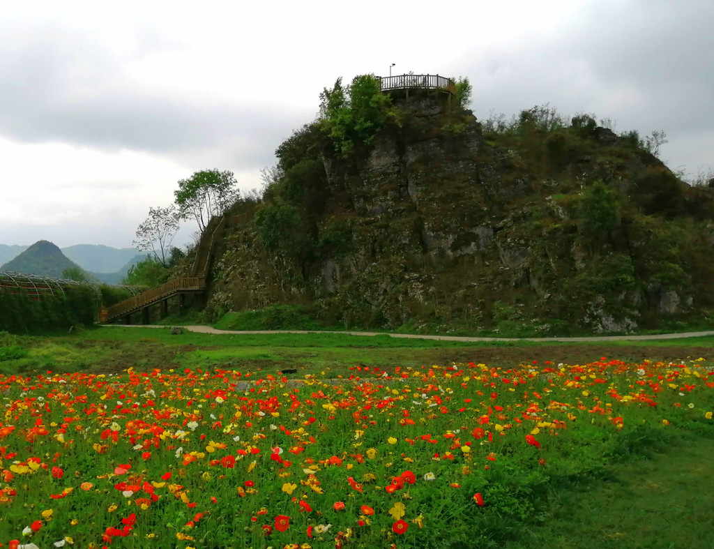 正准备购票,偶遇一位在此开季节性饭店的四川老乡老板,劝我们还是别坐观光车进去,景区里面是真的没花花了,基本上牺牲在冰雹中!听说“奢香军营山地公园”附近可能还有一点,果断决定,拍张景区大门到此一游纪念照,出发“奢香军营山地公园”!