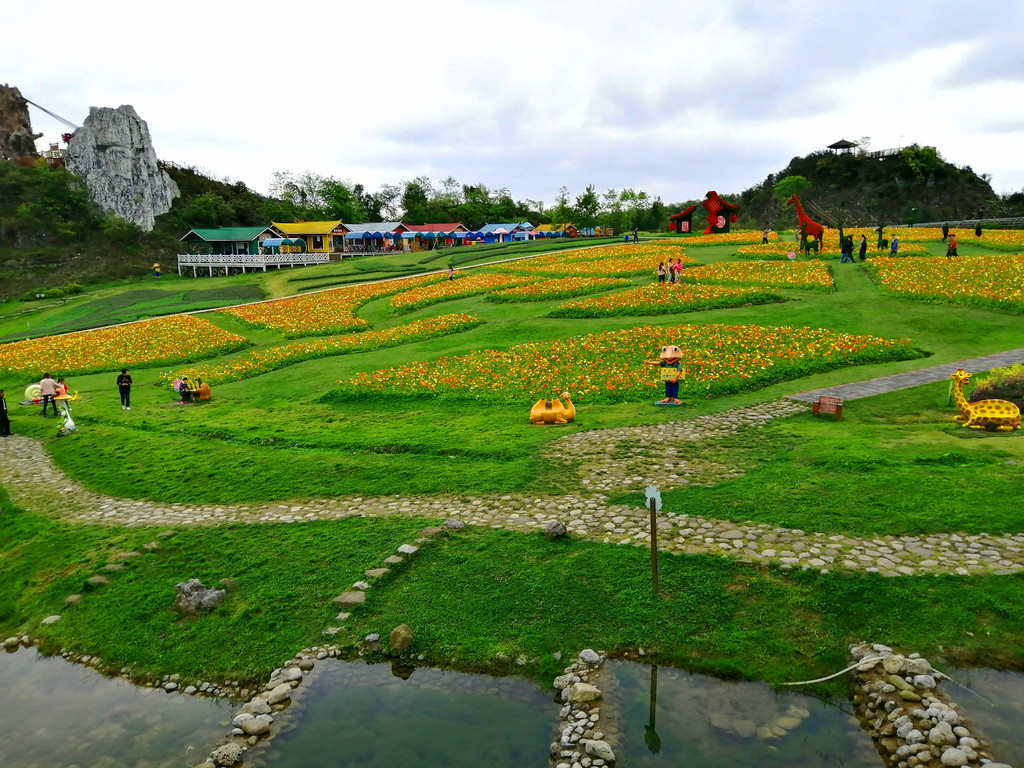 花海小路中安置有许多卡通雕塑,垃圾桶、座椅也都是卡通雕塑。给人印象深刻,这应该是景区特点之一。对小孩子很有吸引力,也许会是女同胞们拍大美照的好地方。