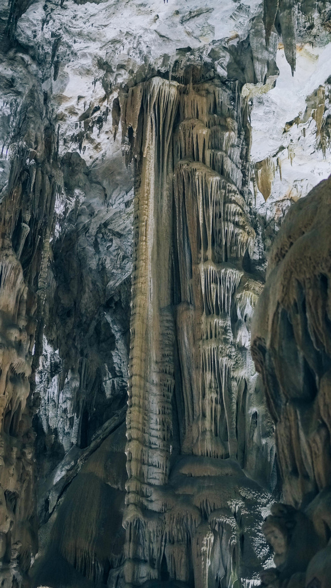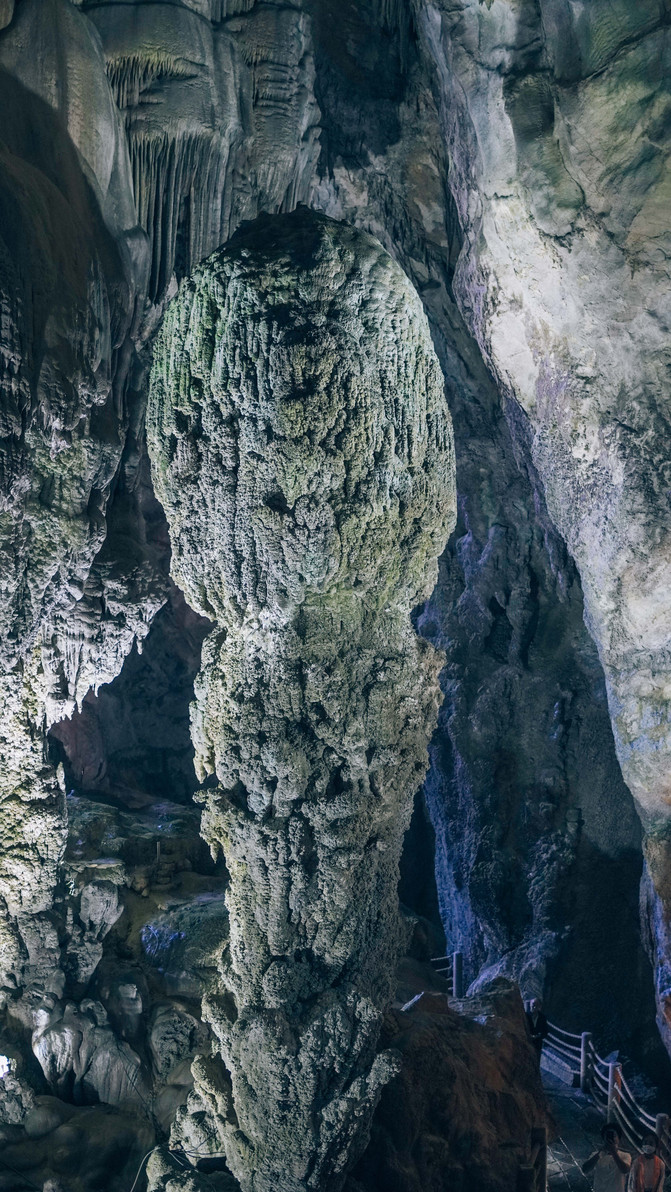 垂落向下的石笋,好似一只巨大的毛笔,在洞内挥洒着水墨丹青。