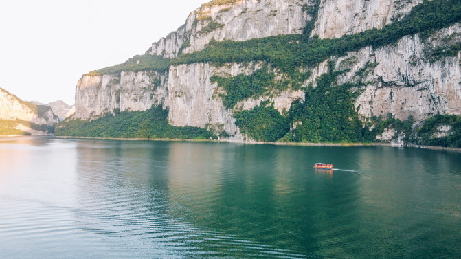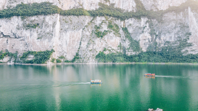 东风湖素来被誉为“山似三峡而水胜三峡,水似漓江而山胜漓江”。所以在到达这里的瞬间,我脑海中浮现的,就是“两岸猿声啼不住,轻舟已过万重山”。