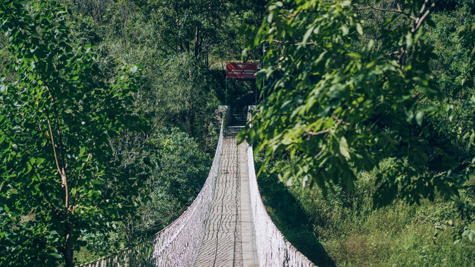 停好车,走过吊桥,晃晃悠悠。