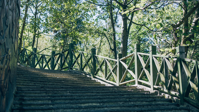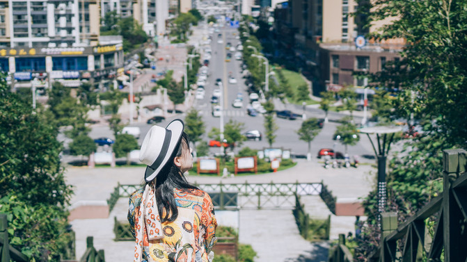 登上这层层阶梯,就开始了城市里的爬山之旅。
