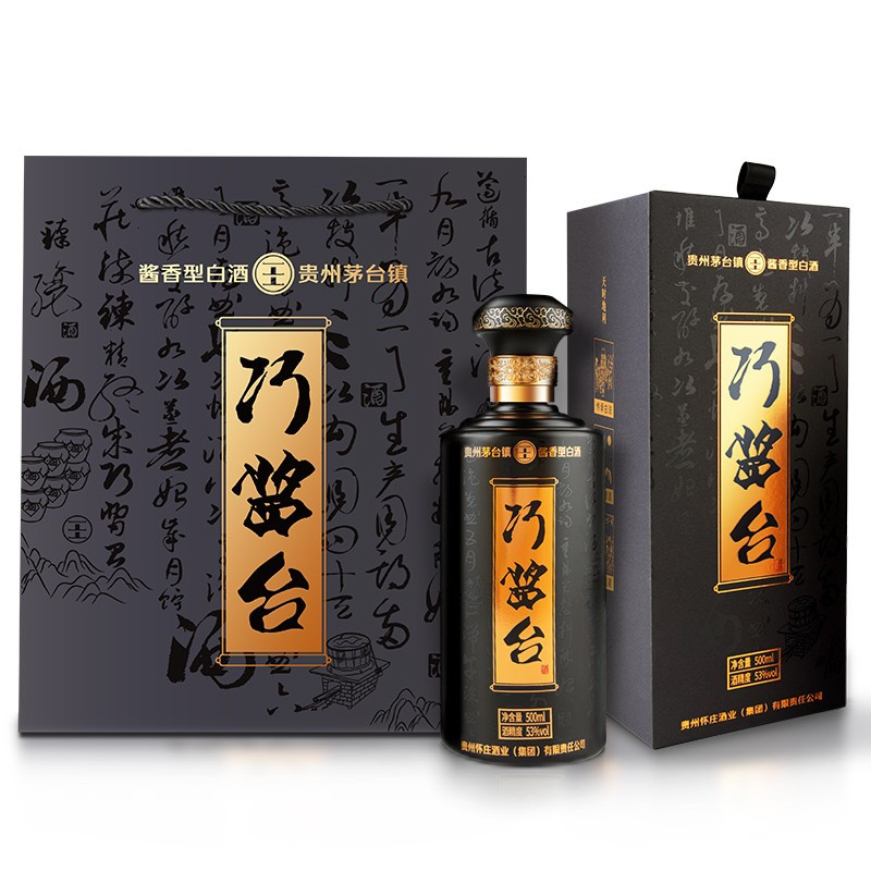 巧酱台酱香型白酒是由贵州怀庄酒业(集团)出品的一款酱香白酒,集团坐落于风光旖旎的赤水河畔--茅台镇。与国酒茅台同享得天独厚的水源、气候、土壤等自然条件。优越的自然环境,为公司的发展创造了有利条件,经过30多年的发展与建设,集团公司取得稳健、长足发展,曾先后被评为遵义市五强白酒企业、中国酒都仁怀市十强民营白酒企业,荣获"国际标准认证"、"有机产品认证"及"安全饮品认证"等证书,已成功申请"湖底恒温窖藏法"国家专利。这款酱香白酒一经出品就受到了广大酒友的关注,深受爱酒之人的喜欢。