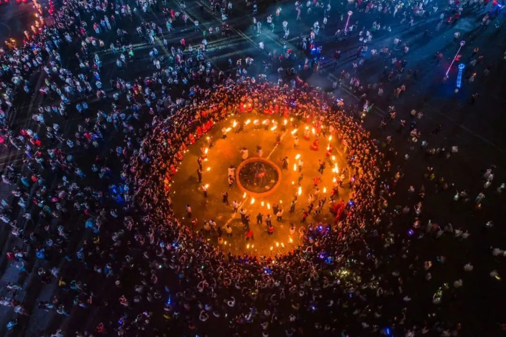 石牛旅游小镇居住着彝族、苗族、白族等少数民族,民族文化氛围浓厚,还能看到彝家的篝火晚会、苗家芦笙舞等活动。夜幕降临,年轻的姑娘、小伙们穿上民族盛装,手挽着手,伴着旋律舞动,沉醉在欢乐祥和的歌舞海洋里,此刻,人比景更美。