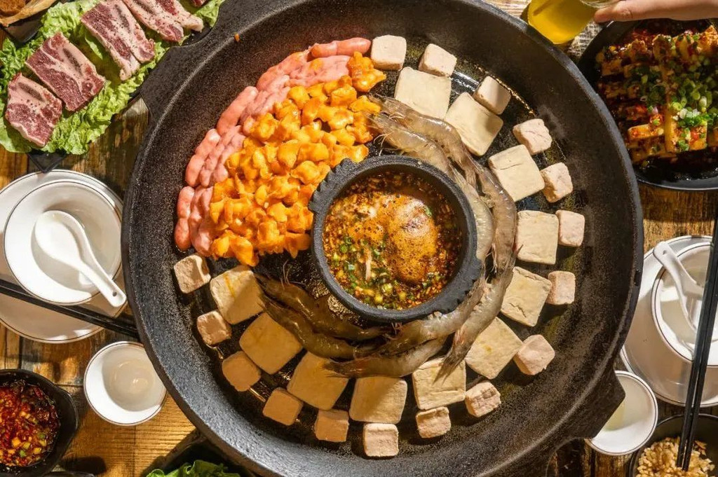 一口土砂锅,一碗活油蘸水,这就是活油烙锅。烙锅堪称“无所不烙”,无论是什么食材,都能在这方天地间发挥出极致美味。烘锅逐渐加热,高温下的蘸水咕噜咕噜,猪油便“活络”开来,融在蘸水中的活油口感鲜活,富有层次。