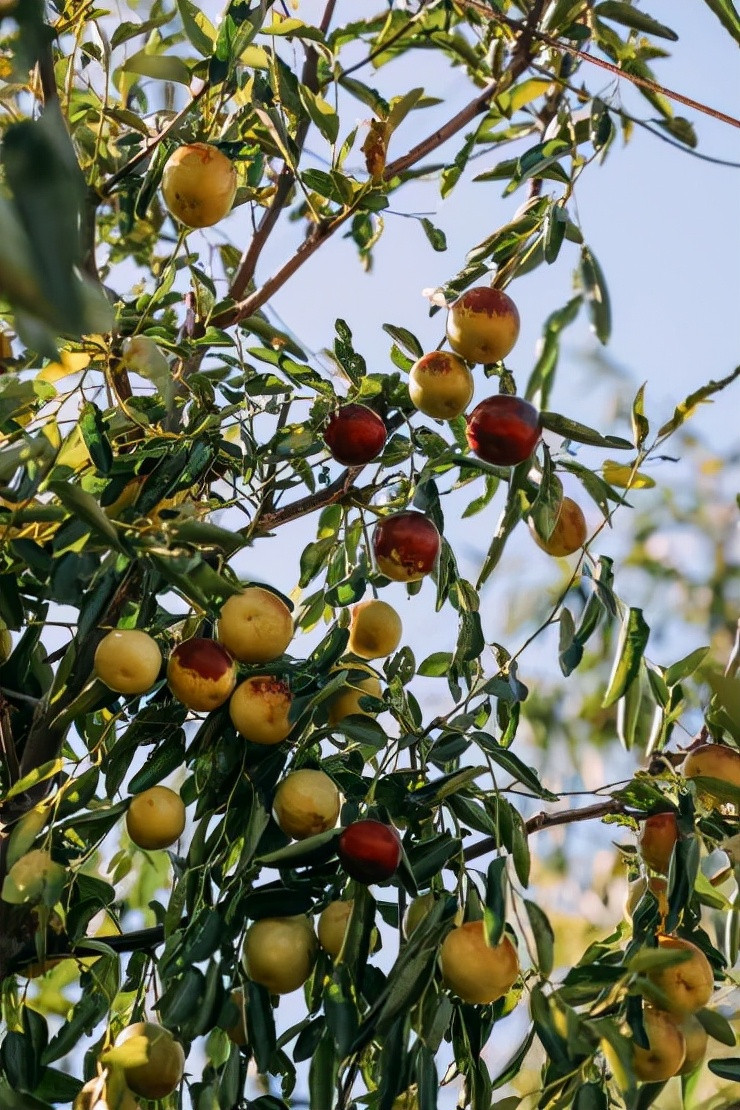 金秋时节的清晨,露浴后的沾化冬枣,滴着露水,于赭红中透着些许乳白,色如玛瑙,珠圆玉润,在采摘园中,忍不住摘了一颗尝尝,冬枣在齿间破碎,继而融化,汁多无渣、甘甜清香,非常好吃,忍不住味蕾的蠢蠢欲动,便一边采摘边吃,既享受了动手的乐趣,也满足了味蕾的享受,不一会我就摘了满满的一筐,肚子也吃的饱饱了。