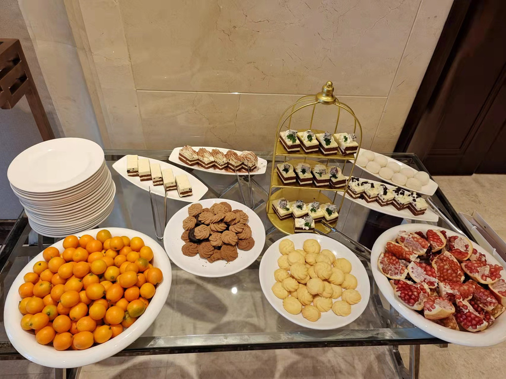 为了方便客人入住,前台会通过发放房卡和发送短信链接两种方式来开通房门。这种入住模式还是我住酒店第一次体验。到达房间门口,只需要点开短信链接,点击开门,房门就会自动打开。房间内的空调灯光都可以进行手机遥控指挥。房间设计也是偏欧式风格的。房间内有独立的客厅空间,浴室和洗漱台是分开的,桌面上摆放着迎宾水果。他们的床也是非常的软,特别的舒服。两款不同的枕头可谓是非常用心了。因第二天会议需上台发言,皮鞋有些脏,问了服务业一句有没有鞋油,没想到工作人员让我换下鞋子,拿着我的鞋子给我去给我擦皮鞋,服务真的是热情而又周到。