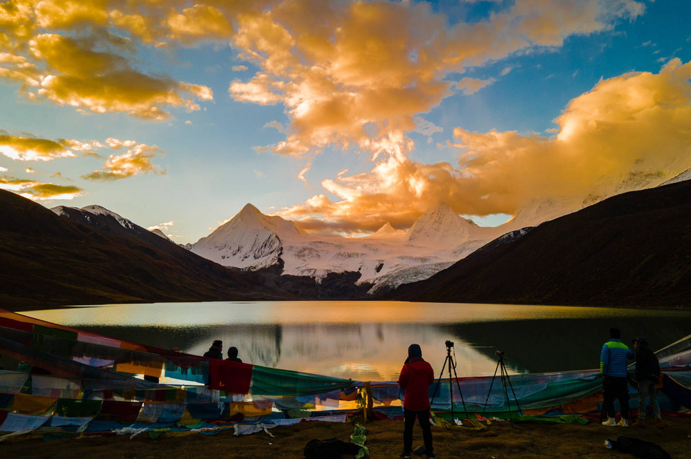 萨普圣湖由神山千年冰雪融化所形成的冰川湖,上湖的湖面还飘着小冰山。而下游的主湖湖水常常呈现蓝绿色,相传每年的5月15日这一天湖面会在一夜之间全部解冻,于是,这一天神湖附近会举行转湖祈福活动,如果能赶上这一天,那才叫有缘。