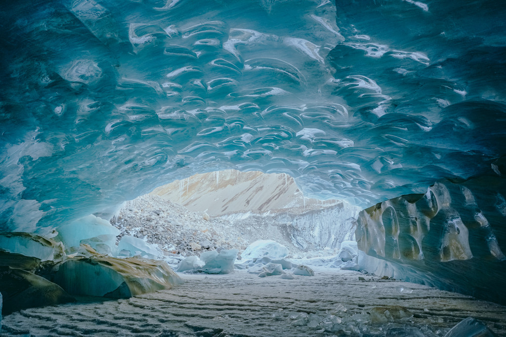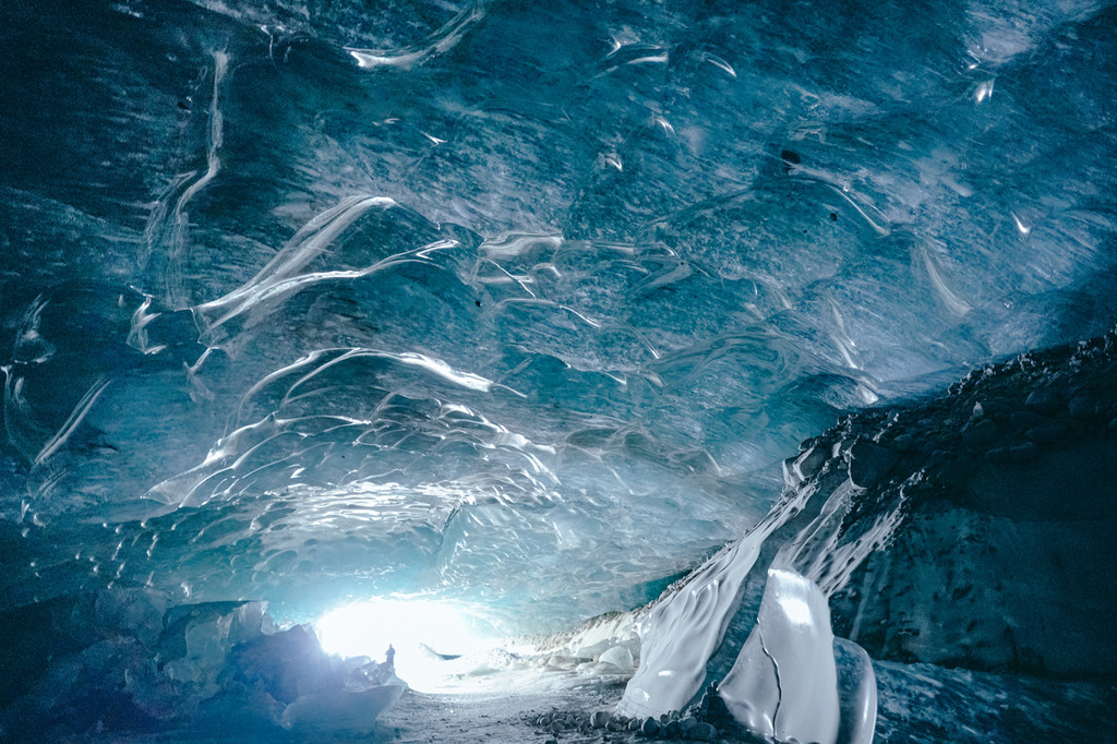 冰川的下面是迷宫般的洞穴,这些洞穴可以穿越详格拉,在冰川下面形成了一条幽静而神秘的河流。河床很光滑,呈现出深邃的浅蓝色和绿色。