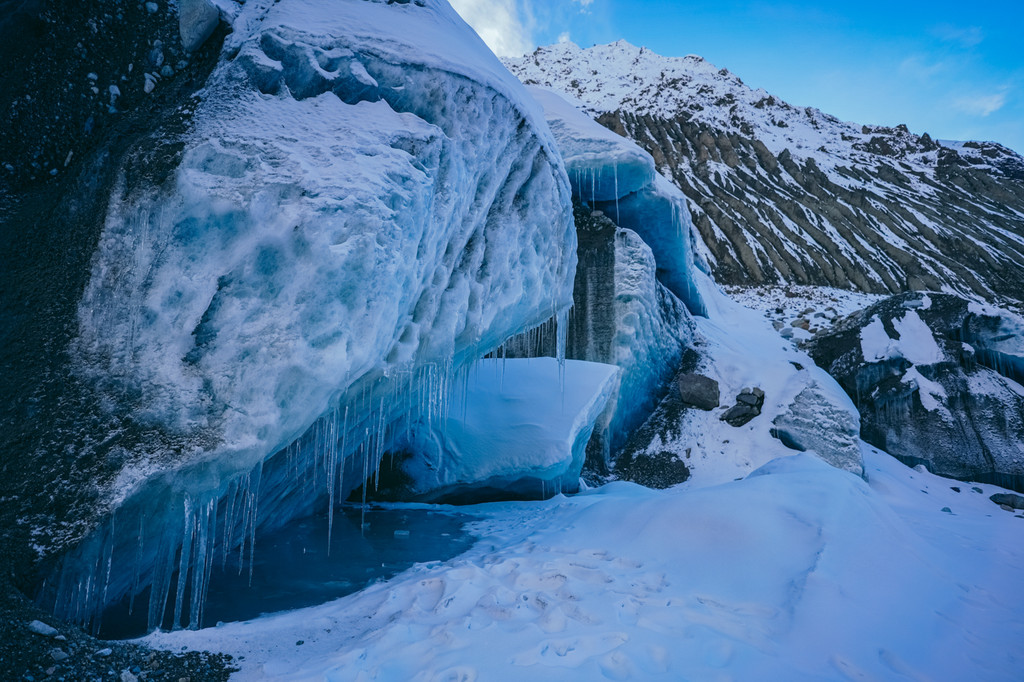 蓝冰洞中国国家地理曾这样描述这里:“详格拉冰川雄伟壮观,是世界上最大的山地冰川之一”确实,详格拉冰川是一处自然景观的壮丽之地。