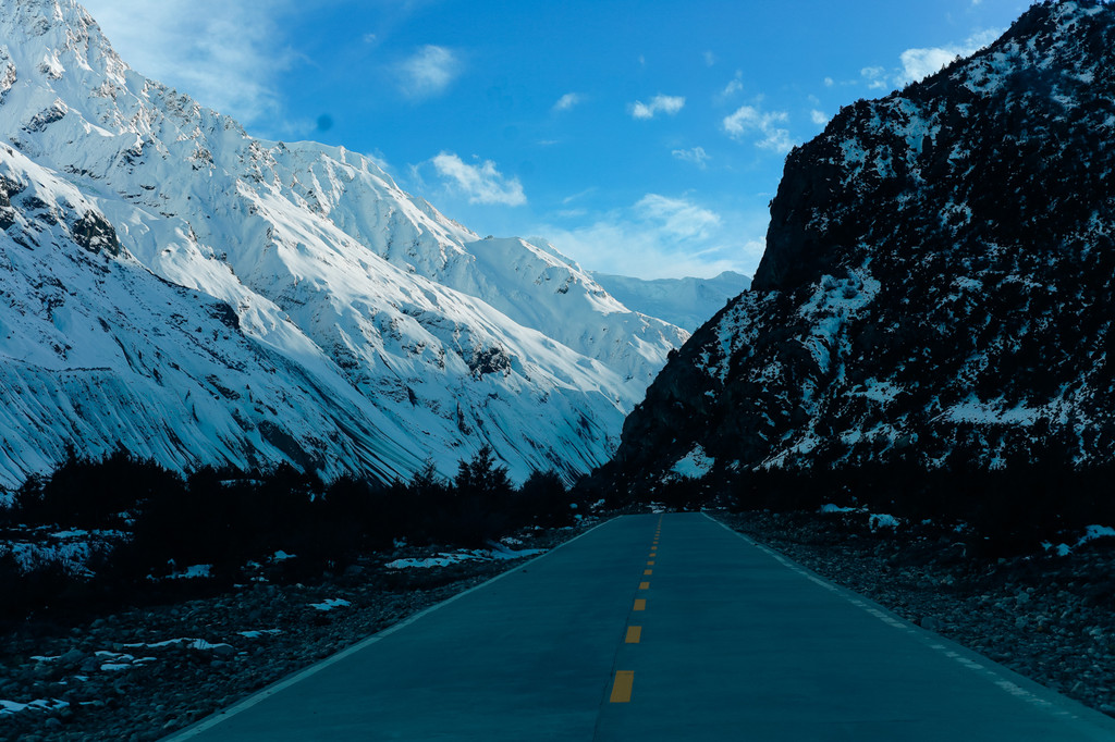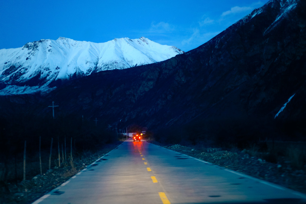 路途为了不走回头路,在欣赏完三色湖之后我们的旅途有一部分是途经国道g558和g317的,西藏的公路总是神奇的。在翻越无数垭口时,一旁是悬崖峭壁,一边是蓝天白云,另一边是深不见底的峡谷。这条川藏中线在西藏境内被称为藏版“独库公路”,一路上景色是不断变化的。这里想引用一段歌词,它足以表达这壮丽的公路景色和我披星戴月的征途。