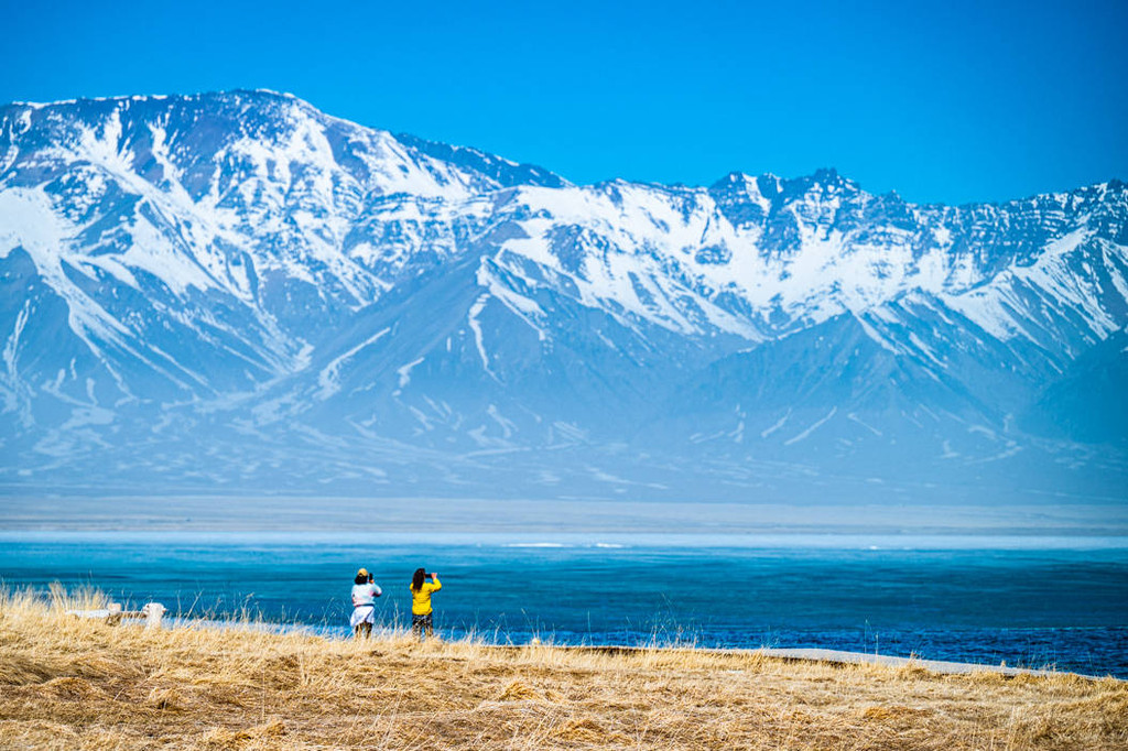 赛里木湖古称“净海”,位于天山山脉的中部,被雪山包围,此刻大部分的雪山尚未融化,站在湖岸迎风,黄草、蓝湖、雪山,特别地壮美,是新疆大西洋暖湿气流最后眷顾的地方,有“大西洋最后一滴眼泪”的说法。