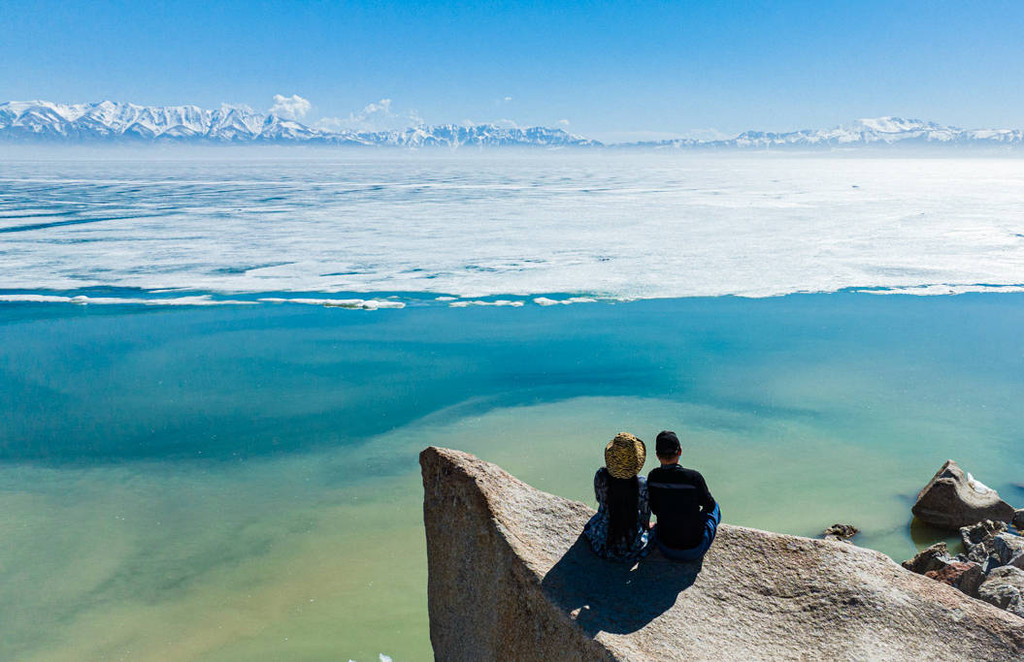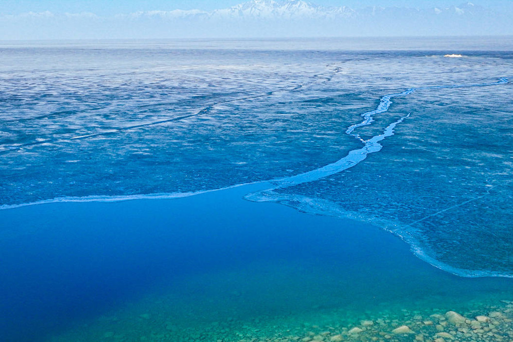 由于疫情影响,绝大多数的旅行团都没有组织起来今年四月的赛里木湖蓝冰旅游,原来真的可以在这个时候看到湛蓝的冰面和幽兰的湖水,一望无际的冰盖开始融化,划出一道道冰裂和晶莹的湖水,偶尔还会听到冰裂的轰鸣声,空谷回响!
