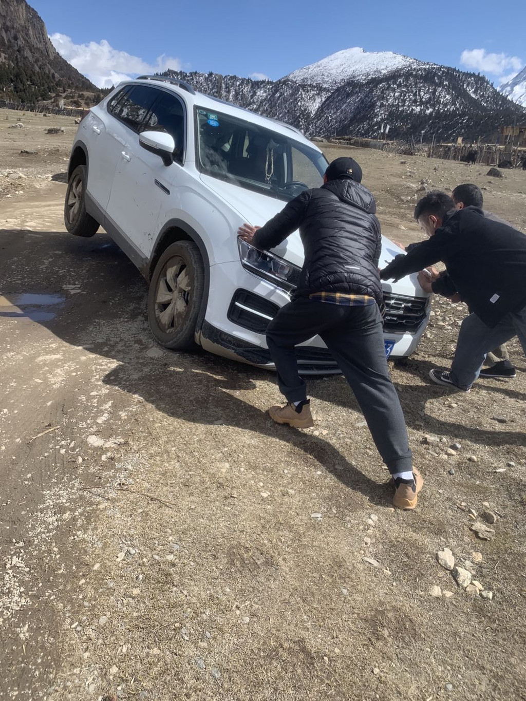 这就是我开坑里的时候,还好有几个兄弟来帮忙,所以开车要谨慎,路况很随机,保险还是要买的