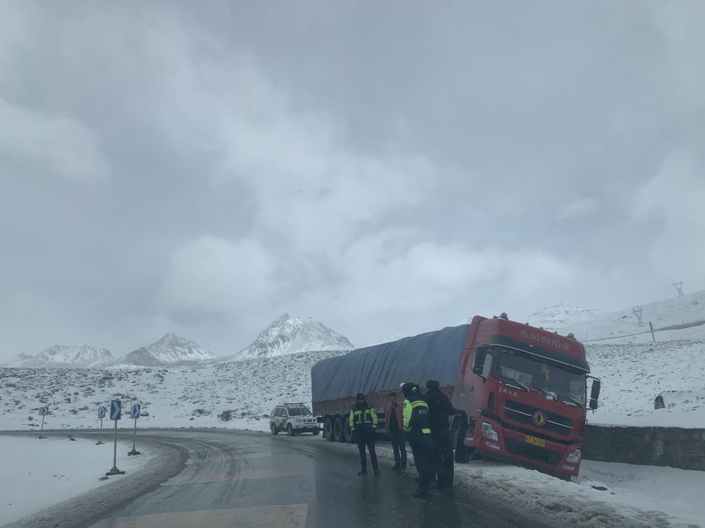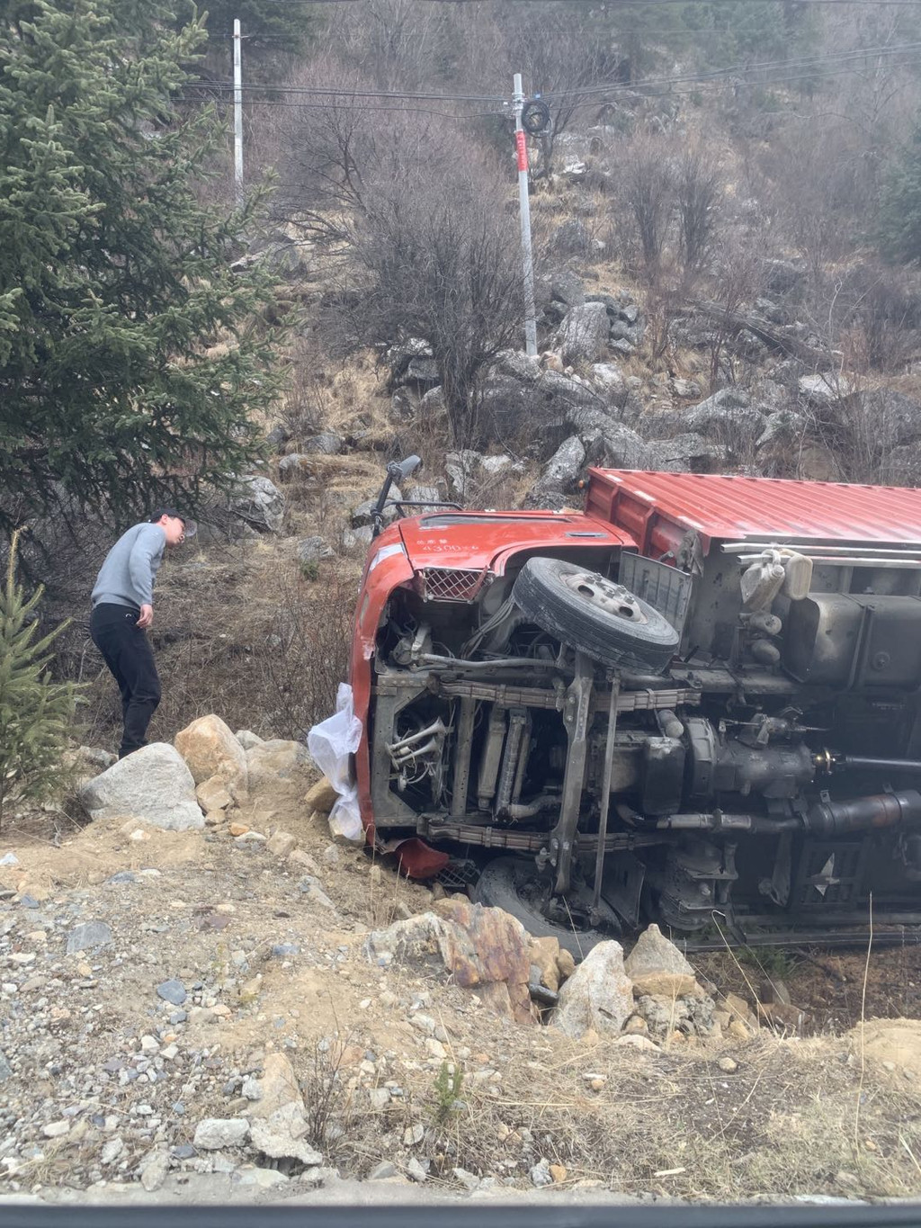 折多山昨晚大雪,又是一场侧翻,只是这一次不严重,只是侧了一点点,还好