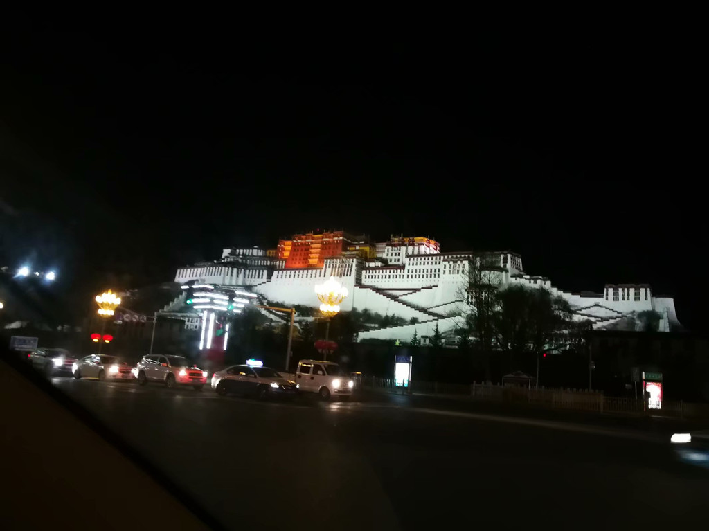 原路返回,天已经黑了,天黑走国道是真考验技术和运气,非常不建议,群里突然有个妹子想看拉萨的夜景,我们就特地绕道布达拉宫,拍了几张布达拉宫夜景图,是真的好看