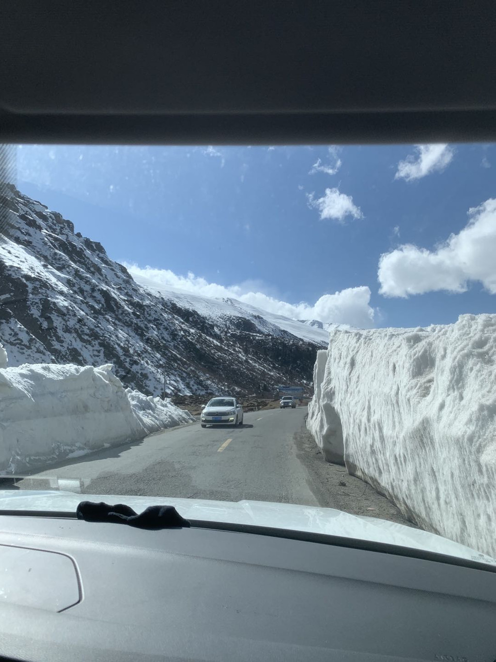 租车一定要租4驱的,318上好几段路是下雪的,交警会查有没有防滑链,没有就不让走,要你掉头去买,318上的防滑链一般都要四五百,太贵了,但如果你的车是4驱的,就不用防滑链就能走,我们有2段这样的路就是这样顺利通过的。