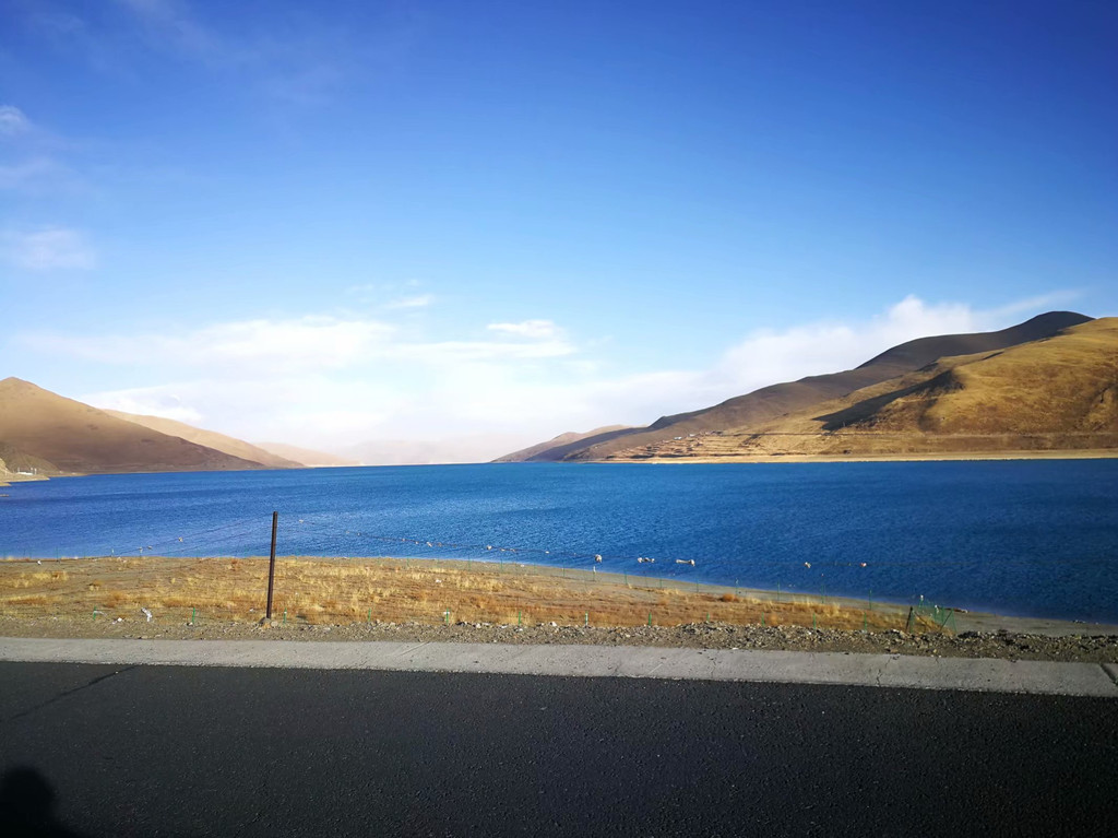 之后直奔羊湖,上山的山路开的心碎蛋疼,不知道转了多少个弯、绕了多少座山,终于到达景区门口,还好疫情期间不收费,继续往上走,跨过山顶,望见羊湖,就彻底沉醉了,以往常听说青山绿水,现在是冬天,虽然我们看见的是黄山绿水,但是这水也是真绿啊,继续往下开,说了无数个卧槽,难掩心中之情,是真美