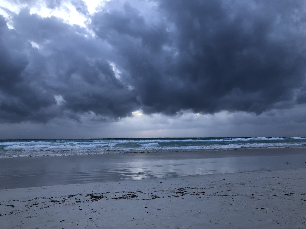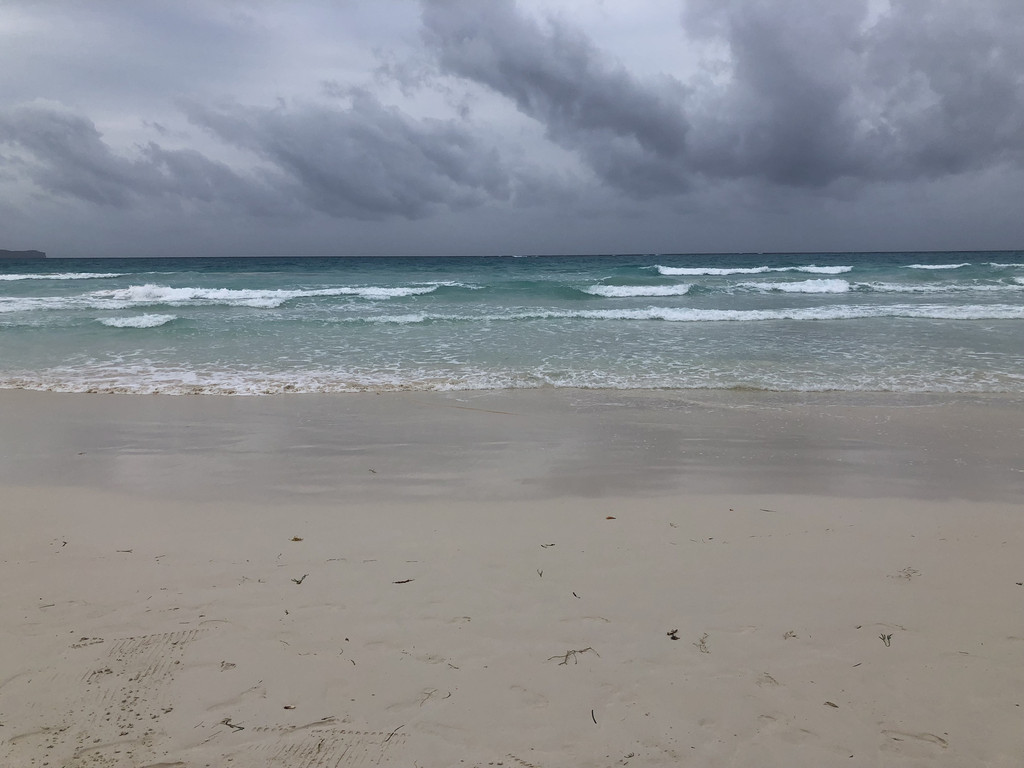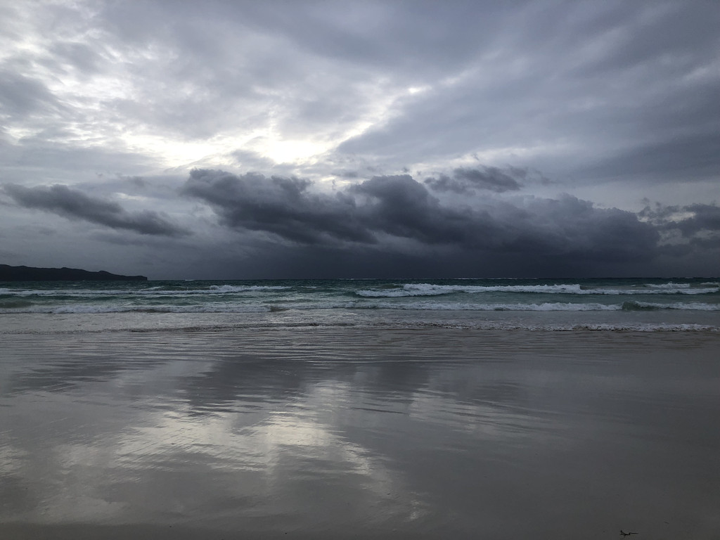 在海岛的日子里,有风和日丽、碧波万顷,也有黑云压顶、波涛汹涌,每天看日出日落也是重要功课,虽然没有看到完美的日落(白沙滩在岛的西边,日出只能看朝霞),阴雨天海边还是阴云密布,但都是令人印象深刻的风景啊。