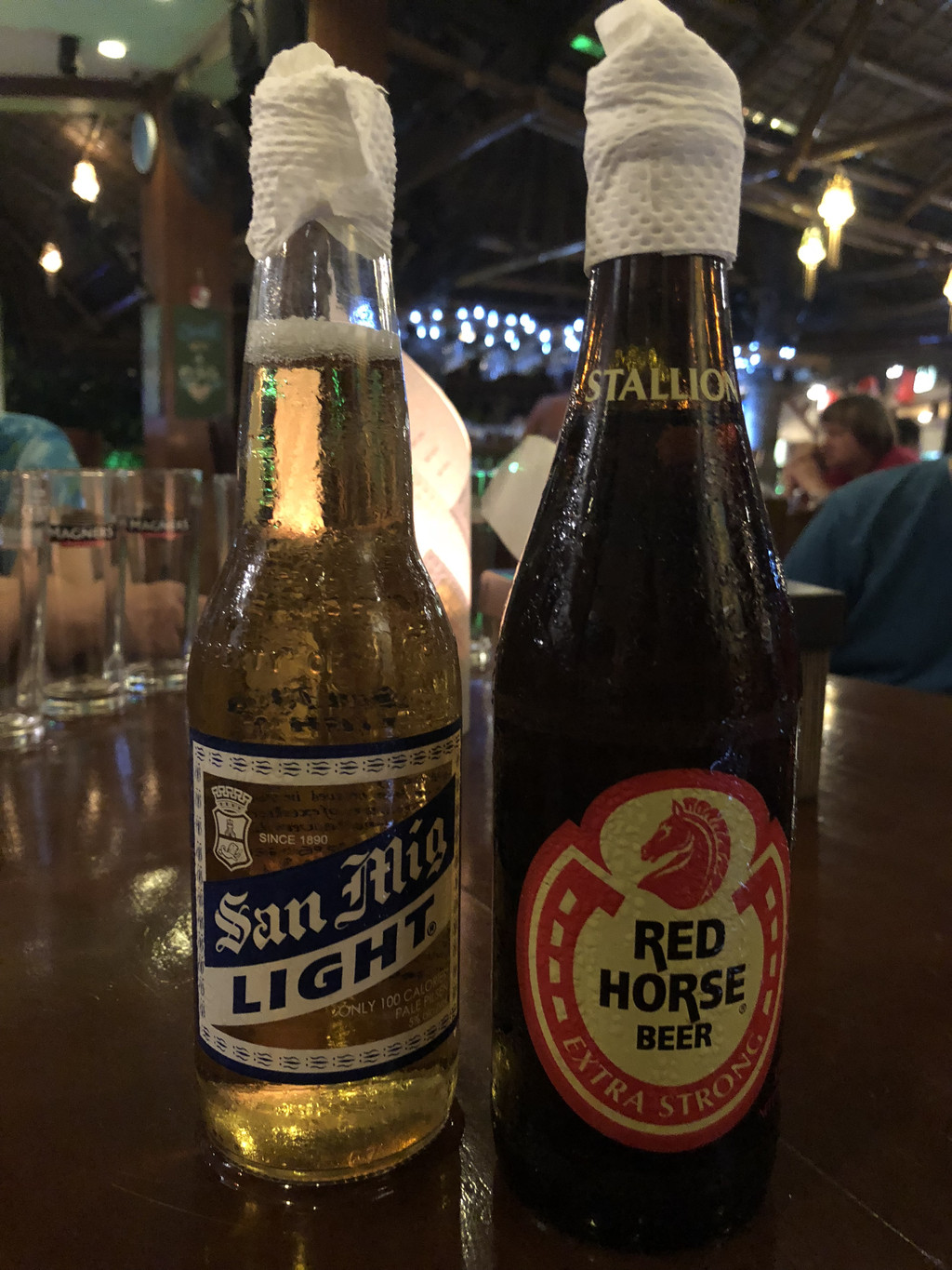 去长滩岛之前做功课,得知菲律宾生力啤酒是本地啤酒中最知名的,有六种口味,好喝又便宜。1.San Miguel Light 生力轻啤;2.RED HORSE BEER 红马啤酒;3.San Miguel Pale Pilsen 生力皮尔森啤酒;4.San Miguel Apple Flavor 生力苹果味啤酒;5.San Miguel Lemon Flavor 生力柠檬味啤酒;6.San Miguel PREMIUM ALL-MALT 生力优质全麦芽啤酒。