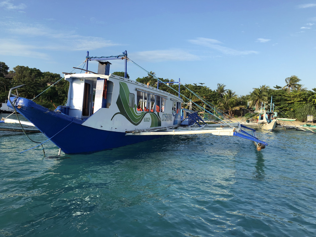 乘飞机到卡利博,再坐大巴到码头,由这里乘船登上长滩岛。很遗憾我们往返都没有坐到螃蟹船(第二图是我们乘的船),尽管螃蟹船比比皆是。