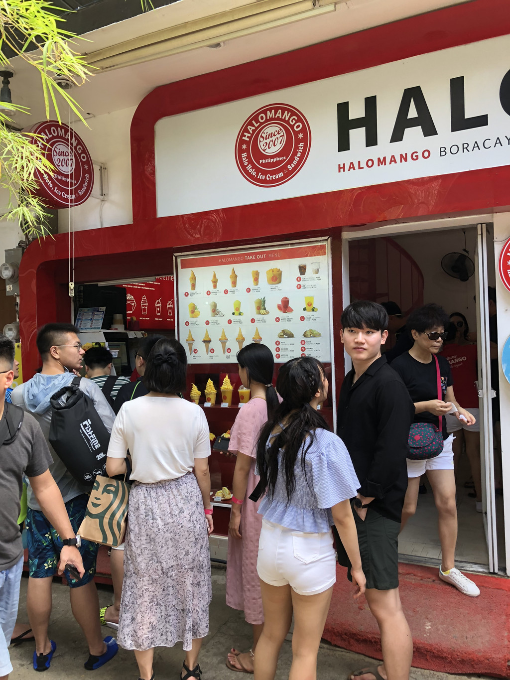 到长滩岛的第二天就去了D' mall的HALOMANGO,这家店很火,点了三种口味的,价格150–200比索,但要另加10%的服务费,也就是165–220一支了。芒果冰淇淋、冰沙的味道都不错,好吃!