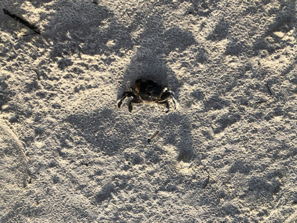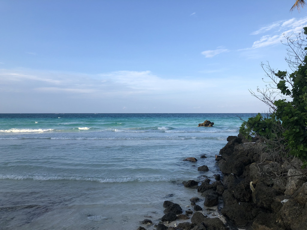 酒店就在附近,来来回回经过几次,岩礁离岸边不远,但总是要涉水过去。有风浪的时候海水可达腰部,水浅的时候至少也要到小腿吧。我们选了风浪不大的时候,在排浪的间隙登上岩礁。上面面积很小,拍了几张照片就返回了,但值得登上去看看。