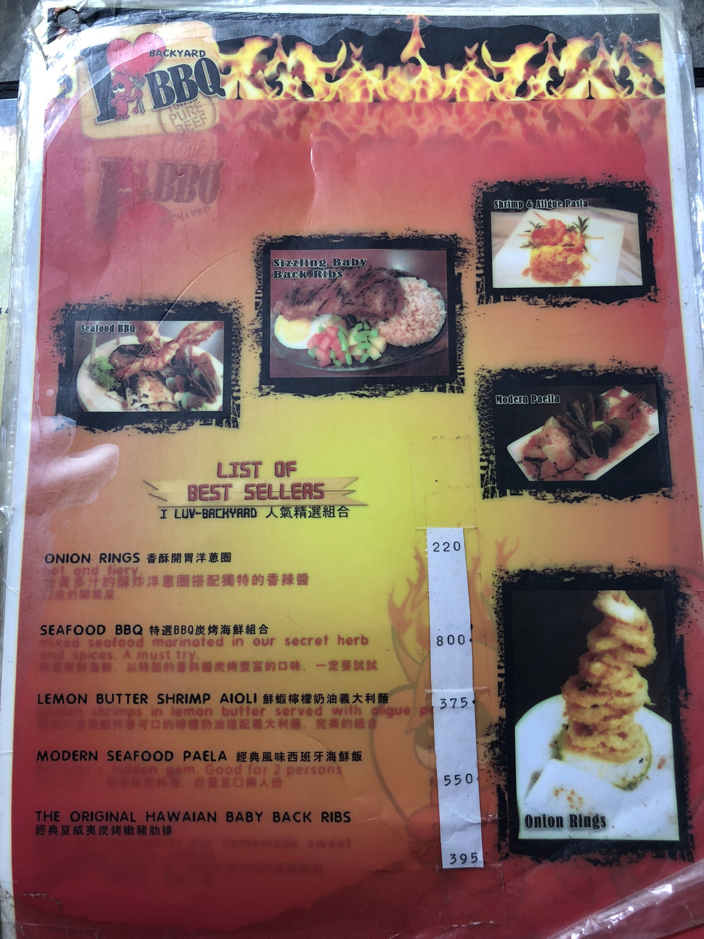 搞笑的插曲是前一天我们在HALOMANGO吃冰淇淋时见到桌上放有BBQ的优惠券(不知是前面顾客在他家消费后赠送的还是散发的),想着会去用餐就收起来了。结账时询问服务生,告诉我们可以使用一张,还省了232.14比索呢(合30块人民币吧)。