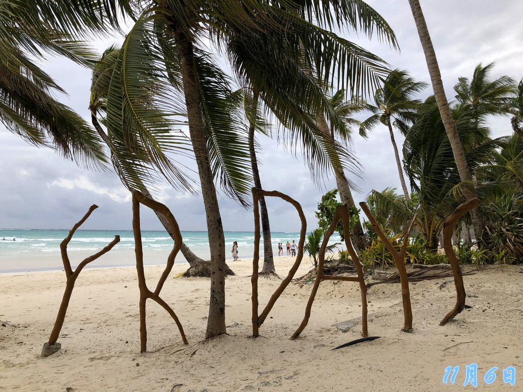 请酒店前台代叫去普卡海滩的嘟嘟车,告诉我们没有叫到,可以由酒店的车送我们去,400比索,我们当然愿意。途中我们和司机商量,在海滩玩不超过一小时,把我们再送回酒店,司机同意了,好棒耶。