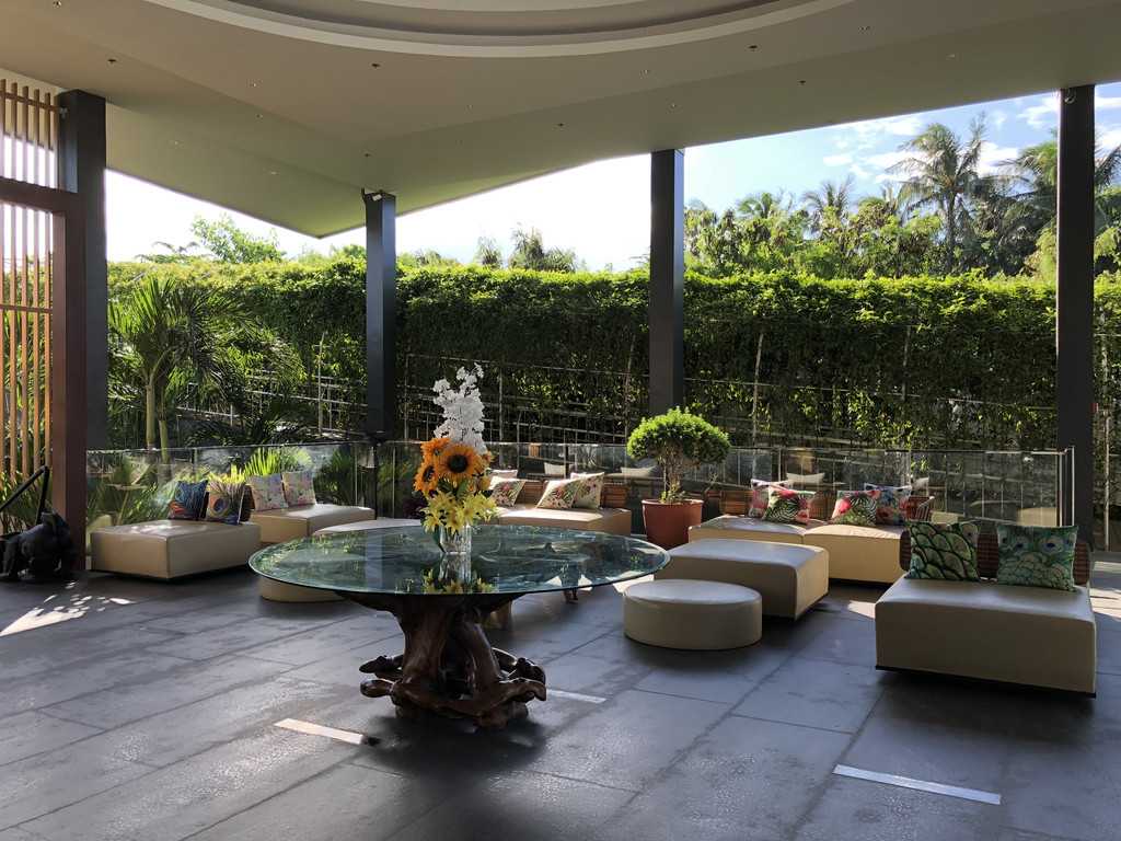林德酒店在携程长滩岛酒店排行榜位列第一,与我们入住的极点酒店前后相邻。到酒店的当晚就发现与林德的大堂只隔一个花坛,由左侧半截墙可见内景。