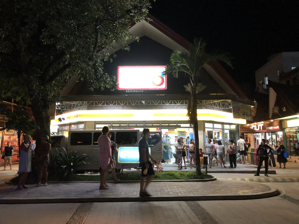 到长滩岛的当晚本想在附近的超市买桶装水的,酒店班车直接拉到D' mall(不少酒店班车的终点),之前看评论有说D' mall超市的水价格很坑,但这时候没有选择的余地,一人提了一桶6升的。超市里熙熙攘攘,付款需排队,生意火啊。
