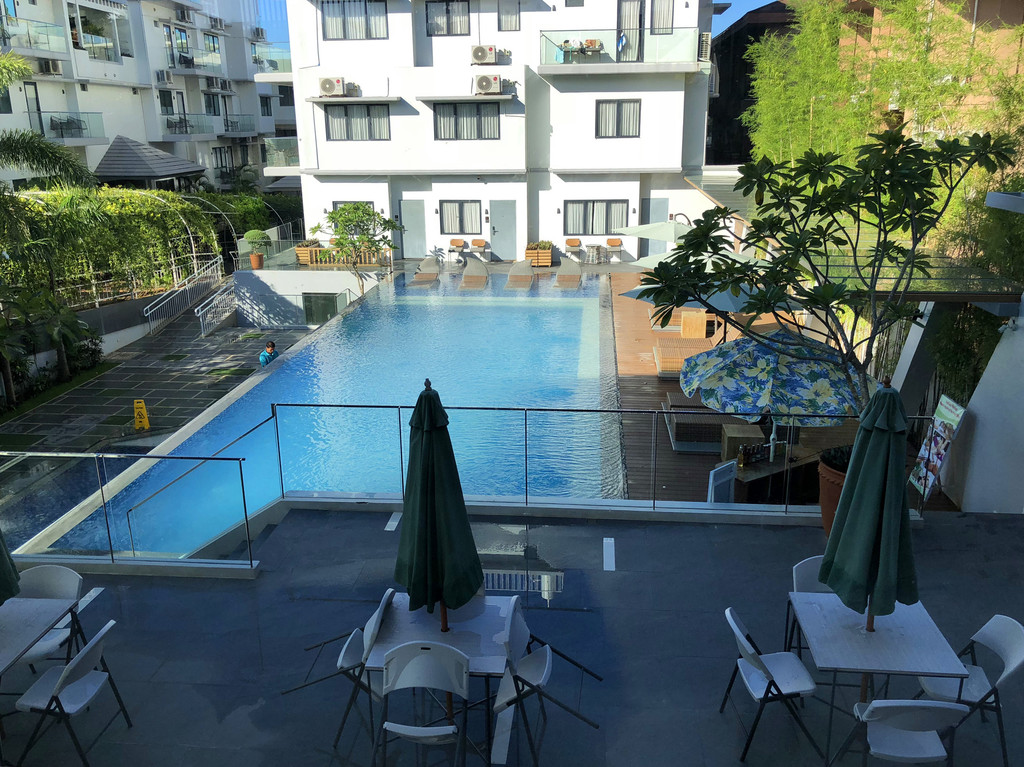 酒店设施服务不错,住客少,房间设施、床品不错,Wi-Fi免费,信号稳定,早餐品种不多但质量不错。餐厅还可提供午晚点餐。泳池不大但住客少也是很不错的。酒店每天有多班往返D'mall的免费班车。