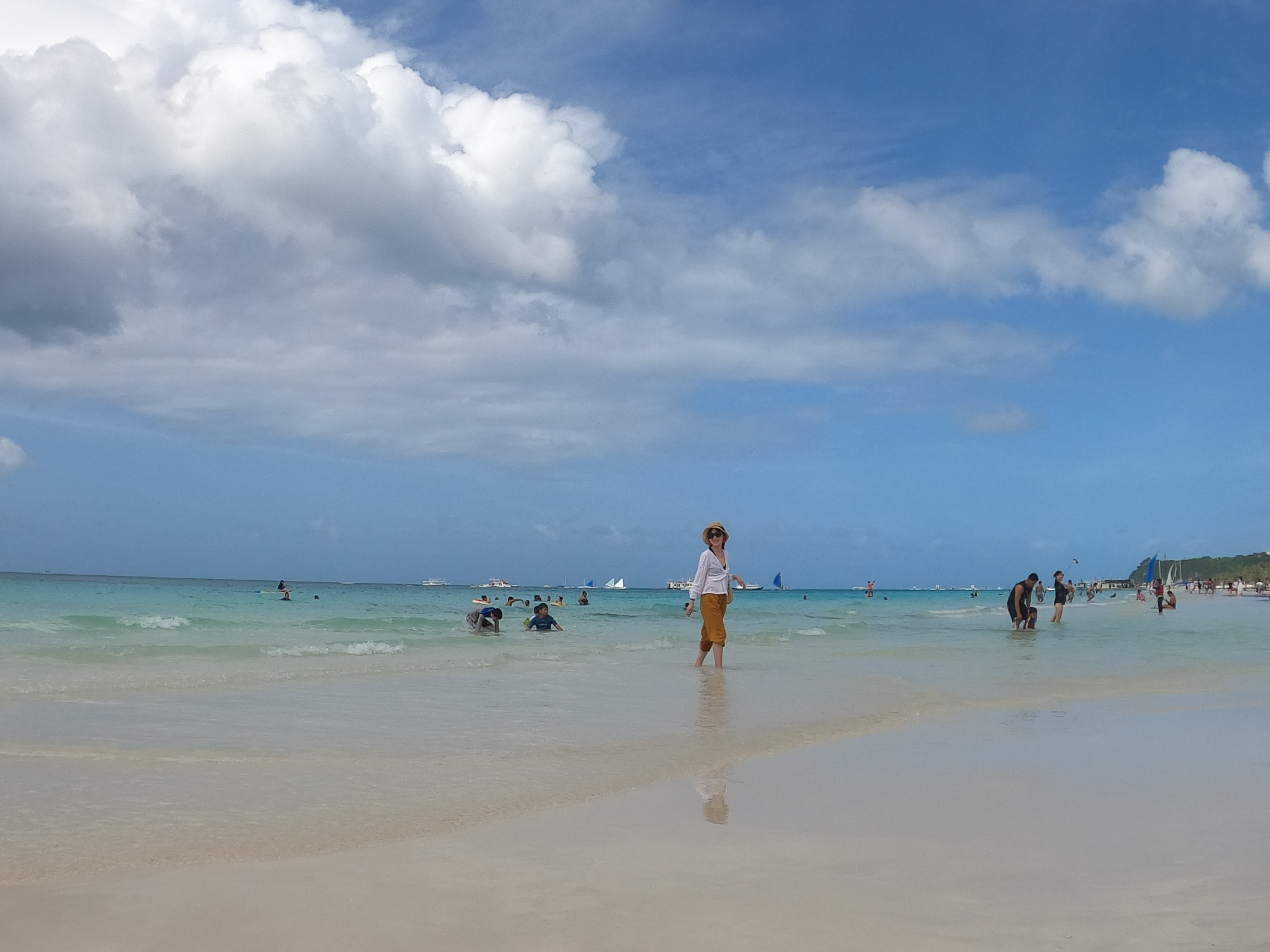 小贴士---卡利波机场的税是20比索,距离卡迪克兰码头1.5小时,有班车前往,150比索,人满发车。到了卡迪克兰后还需要乘渡船前往真正的长滩岛,船程15分钟,船票19.5比索,10周岁以下的不用买票,上岛税50比索,环境税50比索。离开的时候再付环境税50比索。上下船要走窄木板,最好花20比索请人帮忙。岛上的三轮车要价至少50比索,到码头一般要100比索,最多150比索左右。自行车租赁150P/小时。