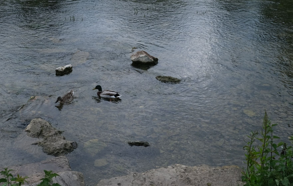 图 河水清澈见底,野鸭子遨游其中。