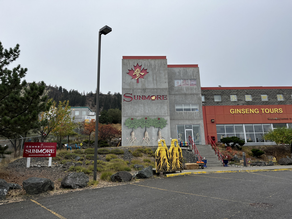 甘露市是北美西洋参最大的产地。咨询当地人购买西洋参地址,很热心也详细的告知我们地址:Sunmore Ginseng Tours一栋两层楼高的房子,墙上有个大大的”参“字以及门口摆放着西洋参的效果图