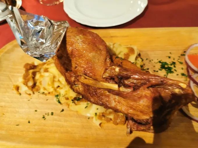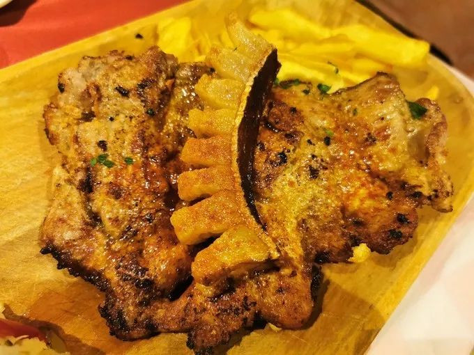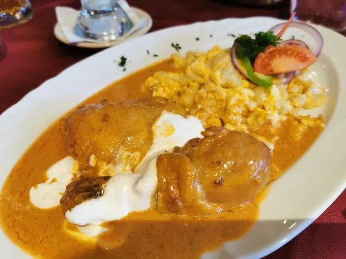 第二天又来吃这家,这顿是我欧洲旅行中吃得最爽的一次。这道菜是吉普赛牛排,上面那款是猪肥肉,肥而不腻,搭配他们的泡菜吃。下面是牛排,牛排是腌制过的,用了特殊的香料。非常适合我的口味,后来去别对的国家再找吉普赛牛排,就找不到了。