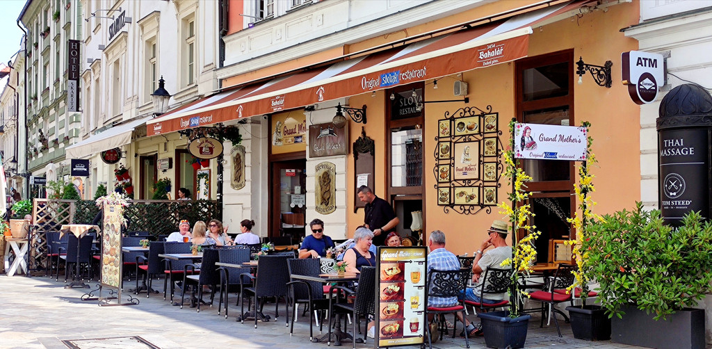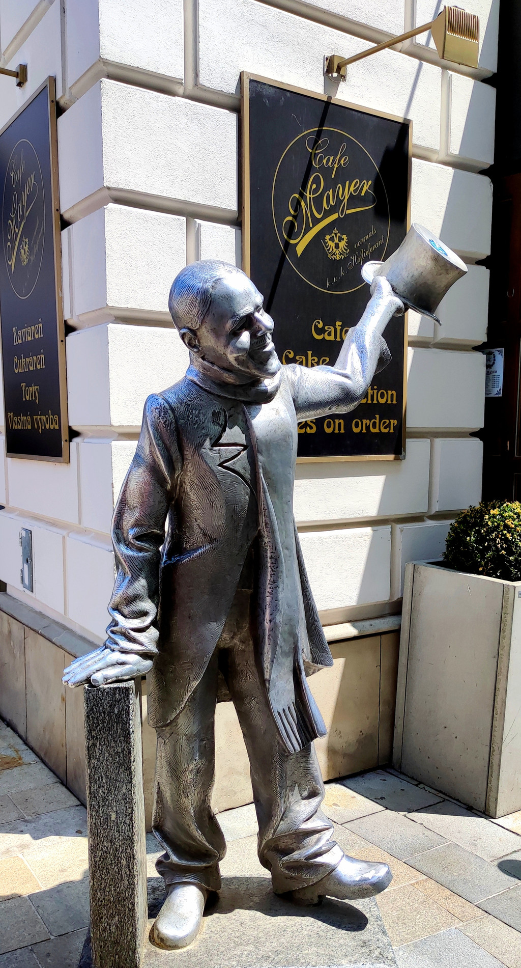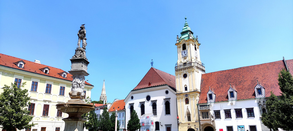 布拉提斯拉法老城区的房子大多是巴洛克风格的建筑,漫步在老城方石铺就的街道上,仿佛穿越到了中世纪。在这里随处可见富有创意的店铺招牌和街头雕塑。