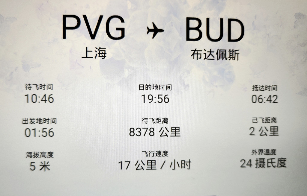 上海浦东国际机场搭乘航班飞往布达佩斯。