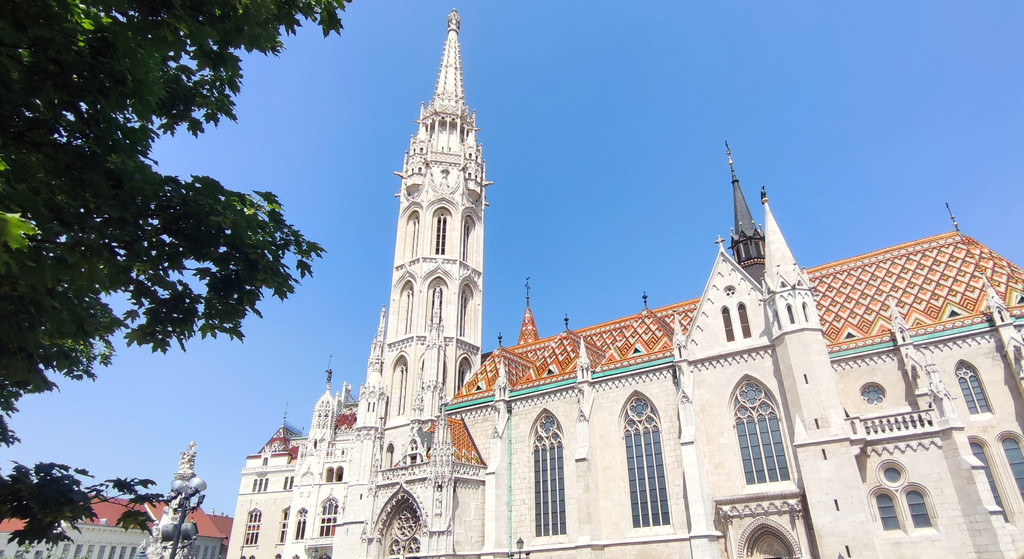 马加什教堂属新哥特式教堂,极富艺术性的南侧的尖塔钟楼,瑰丽的教堂拱顶。